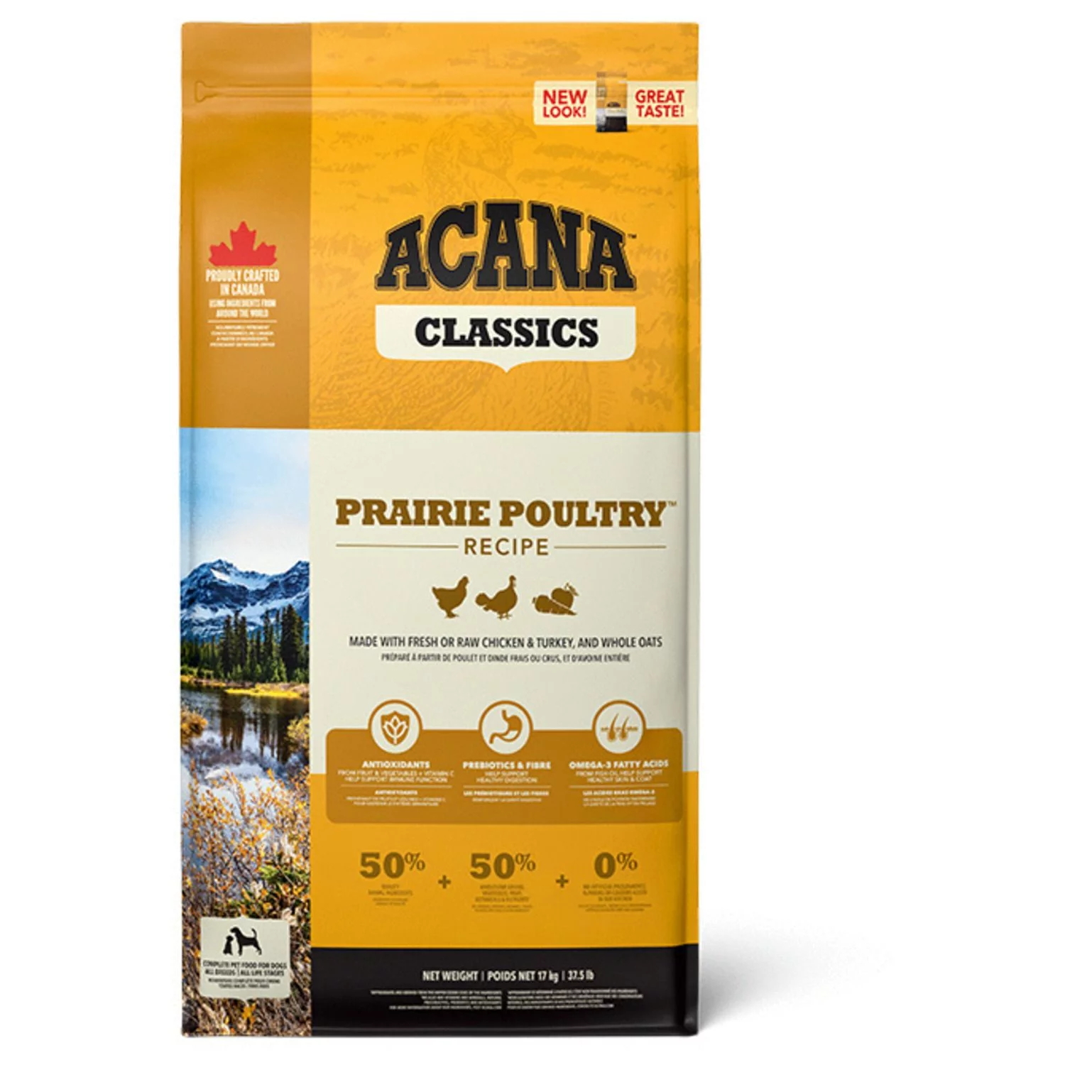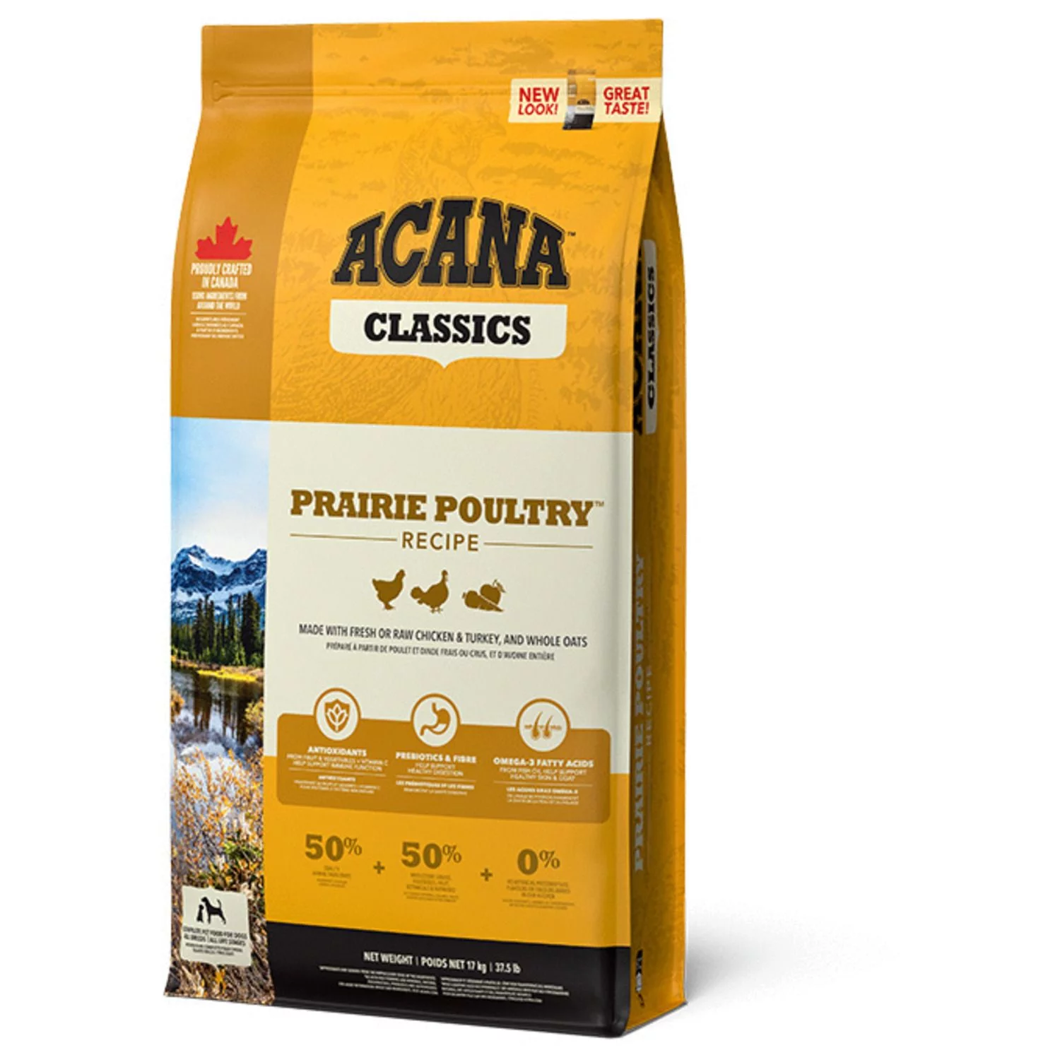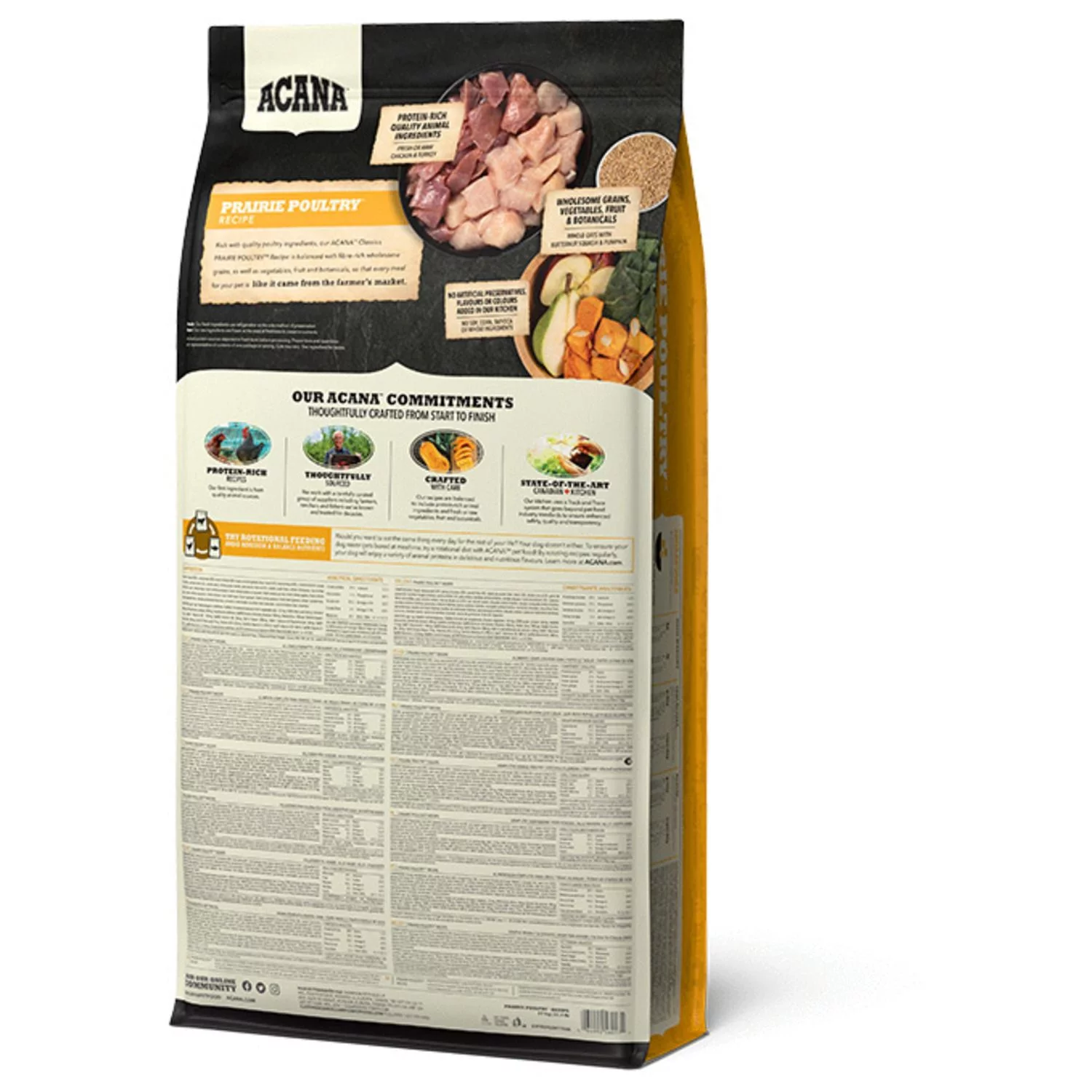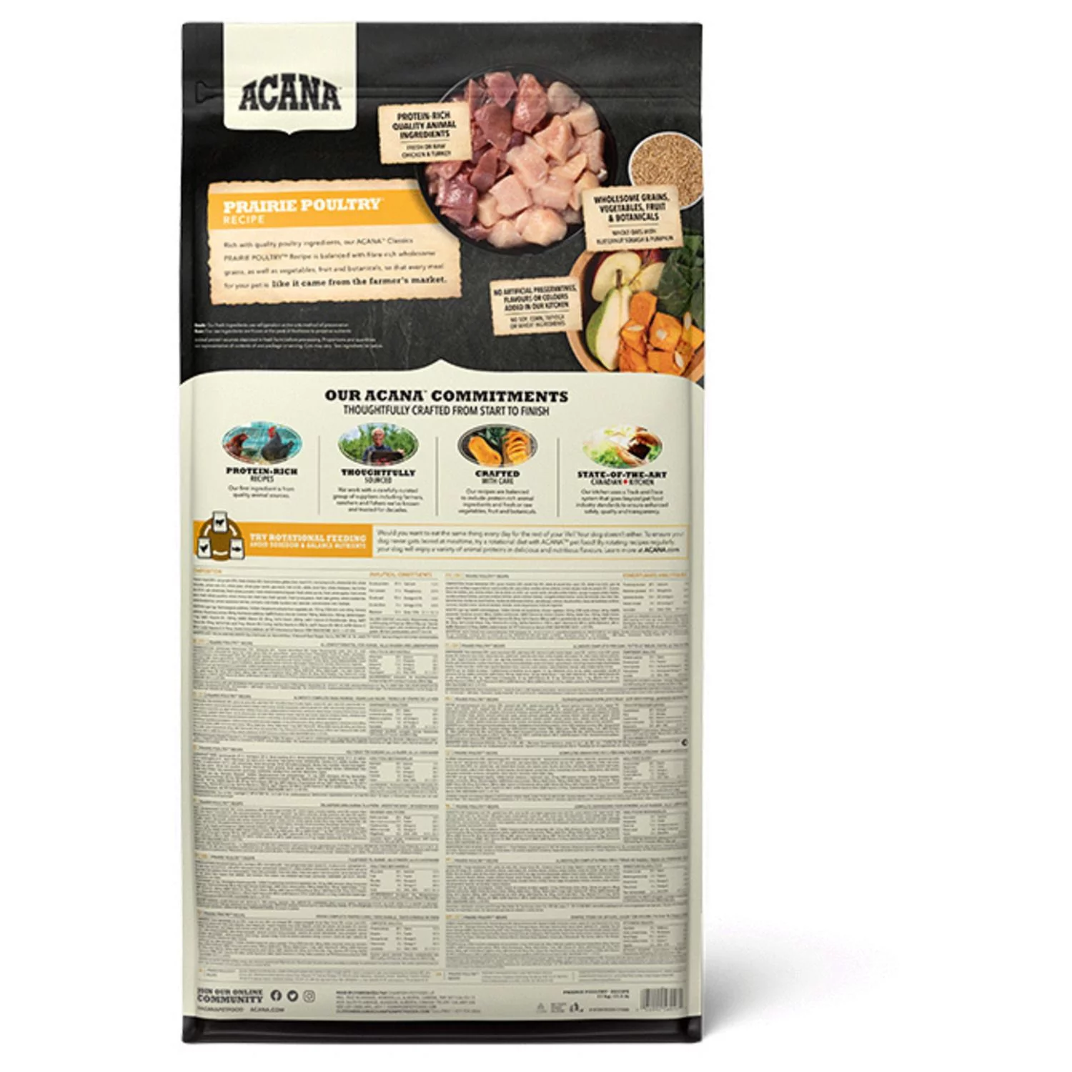 De voeding van ACANA is volgens het Biologically Appropriate-principe bereid en zit vol waardevolle voedingsstoffen voor een perfecte voeding van honden van alle rassen en leeftijden. ACANA Prairie Poultry bestaat uit 50% dierlijke ingrediënten en 50% plantaardige ingrediënten. Zij maken gebruik van glutenvrije haver voor een gelijkmatige energieafgifte.