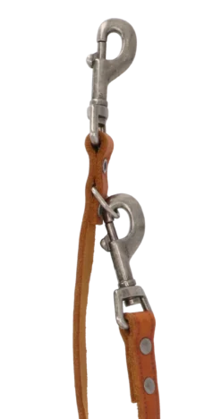 Dit is een riem van vetleer, dat wil zeggen dat de dresseerlijn niet is gecoat met een kleur maar geïmpregneerd. Zo krijg je lijnen van hoge kwaliteit waarbij de structuur van het leer nog zichtbaar is.