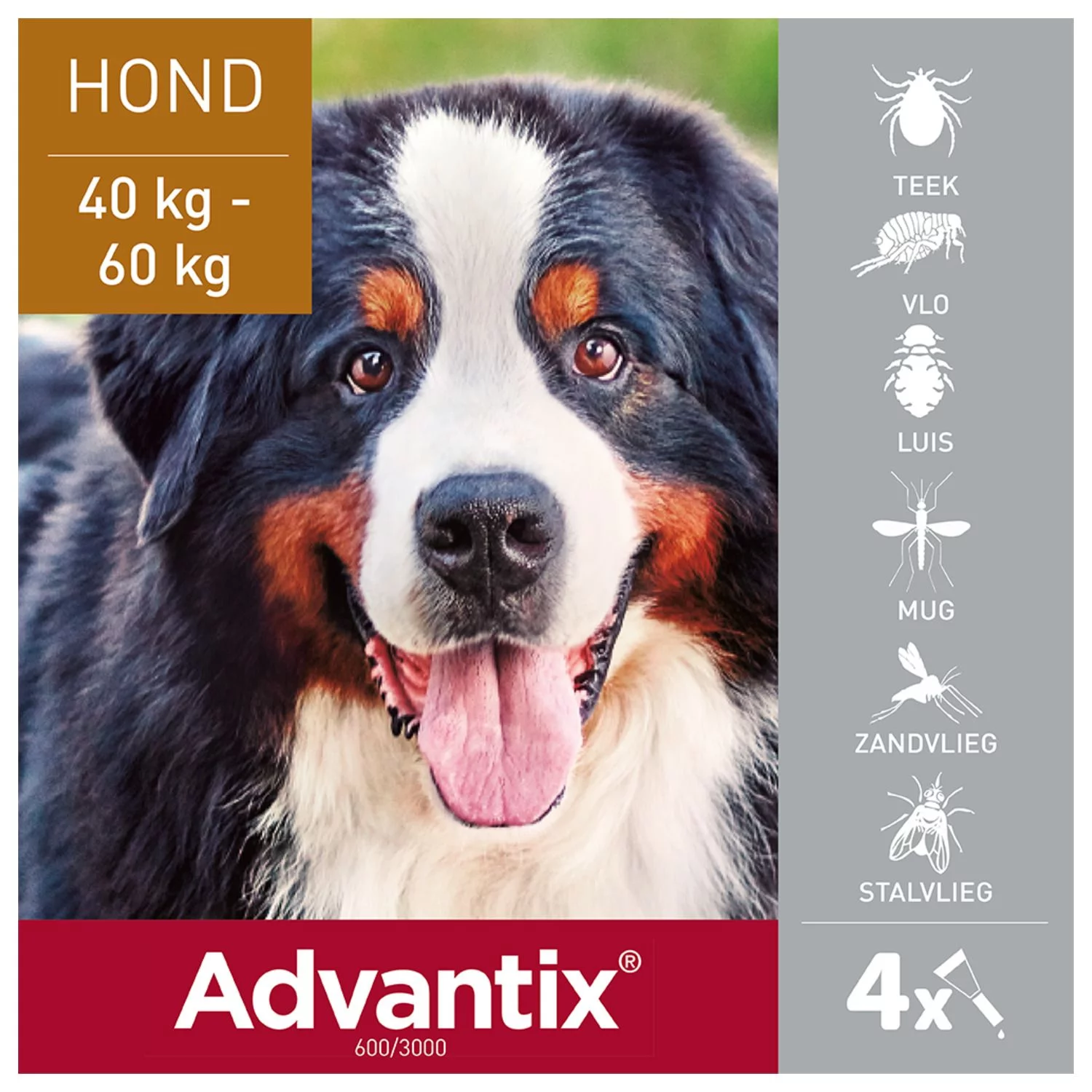 Honden kunnen last krijgen van veel verschillende parasieten, zoals vlooien en teken. Deze diertjes zijn vervelend voor jou en je dier, als je pech hebt kan je hond er zelfs ziek van worden. Een behandeling met een breedspectrum parasietenmiddel, zoals Advantix 600, geeft jouw hond de beste bescherming tegen ongewenste gasten. Advantix doodt vlooien, vlooienlarven en teken en werkt daarnaast afwerend tegen teken, muggen, zandvliegen en stalvliegen.