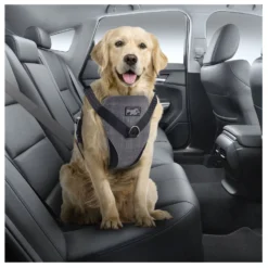 De autogordel heeft een comfortabele pasvorm dankzij de zachte padding aan de binnenzijde. Ook is het harnas makkelijk om te doen. Om trekken tijdens het wandelen te voorkomen, kan je gebruik maken van de extra D-ring op de borst.