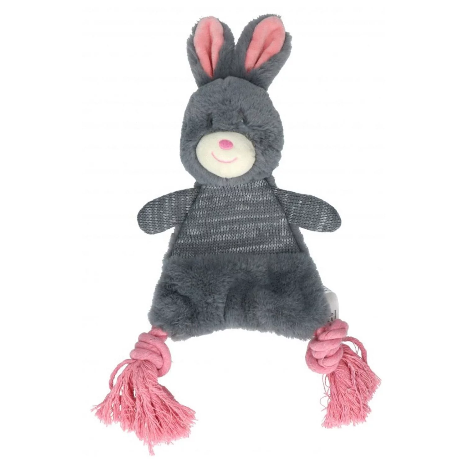 Neem bijvoorbeeld deze Bunny Puppy Crunchy Rope, een ontzettend schattig konijntje gemaakt van superzacht pluche in combinatie met een gebreide stof. Binnenin vind je knispermateriaal en de pootjes zijn gemaakt van flostouw. Door de verschillende texturen is de Bunny Puppy een uitdagend en verrassend speeltje voor je jonge hond. De knuffel is dubbel gestikt voor een langere levensduur.
