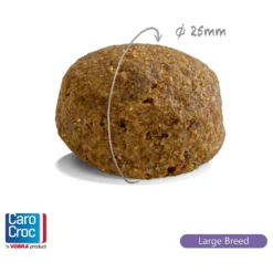 De CaroCroc Large Breed heeft de ideale uitkomst voor onze grotere viervoeters. Honden van grote rassen staan er bekend om dat ze over het algemeen vaker schrokken en dit vergroot de kans op een maagkanteling. CaroCroc Large Breed heeft er daarom voor gekozen om de brok extra groot te maken! Zo wordt het schrokgedrag van je hond verminderd. Daarnaast bevatten de bestandsdelen van deze brokken een extra ondersteuning voor de botten en het kraakbeen, want grotere honden zijn vaak gevoeliger voor gewrichtsslijtage. Met de optimale Omega-3 en -6 verhouding blijft ook de huid en vacht stralen.