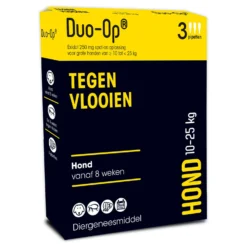 Wanneer er een vlooienplaag optreedt, is het altijd belangrijk dat je alle huisdieren in het huishouden tegelijk behandelt tegen vlooien. Heb jij een hond, kat en een konijn? Dan is Duo-Op een ideaal product waarmee je alle huisdieren in 1 keer kunt behandelen. Let uiteraard wel op dat je het juiste product voor elk huisdier koopt. Er zijn verschillende varianten voor hond, kat en konijn, verdeeld in gewichtsklassen.