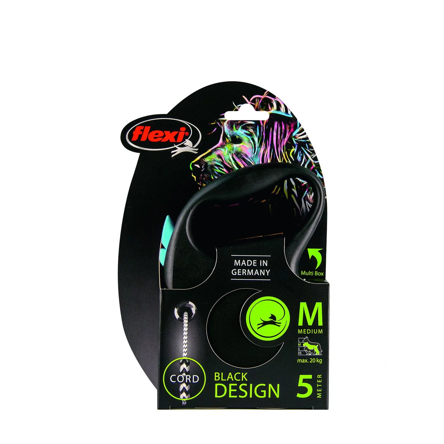 Het is mogelijk om de Black Design M Koord uit te breiden met de Flexi Multi Box (poepzakjes- of snackhouder). De lijn is verkrijgbaar in verschillende maten, afhankelijk van het gewicht van je hond. De Black Design-lijn bevat zwarte rollijnen met opvallende, gekleurde accenten.