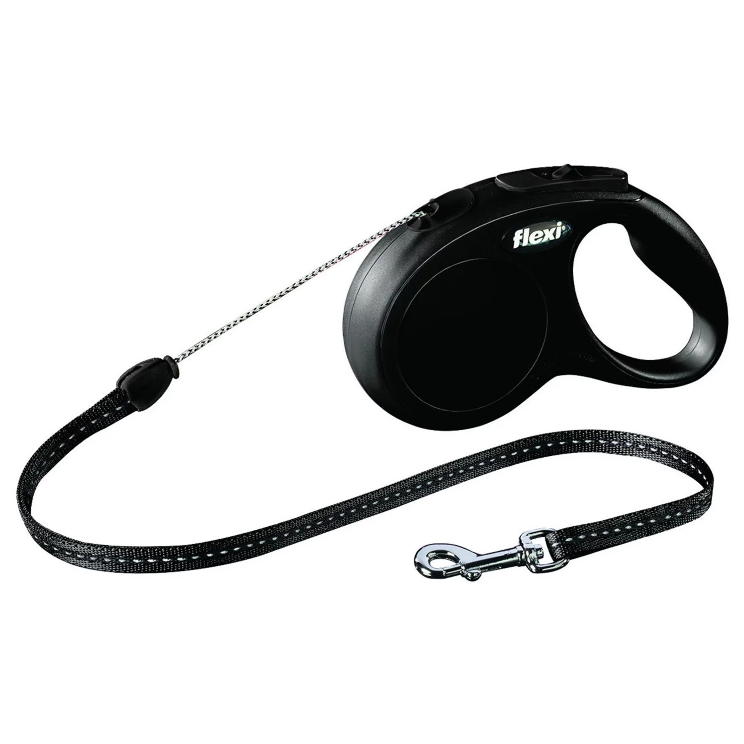 Bij Flexi kan je kiezen tussen lijnen met een koord en lijnen met tape. Het is een persoonlijke voorkeur welke variant je het fijnst vindt. In principe zijn beide soorten even sterk en veilig om te gebruiken. De New Classic Cord bevat een koord.