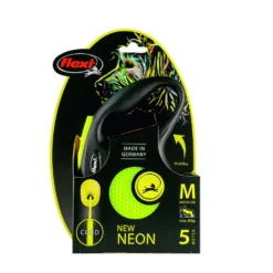 Het uitlaten van je viervoeter was nog nooit zo prettig als met de rollijnen van Flexi. Eén van die rollijnen is de New Neon Cord M. Door zijn stijlvolle design en ergonomische handgreep ligt de lijn goed in de hand. De lijn rolt altijd soepel op en af maar dankzij het innovatieve remsysteem kan je de lijn ook afstellen op een vaste lengte die je zelf fijn vindt. In tegenstelling tot de New Classic, valt de New Neon extra goed op in het donker.