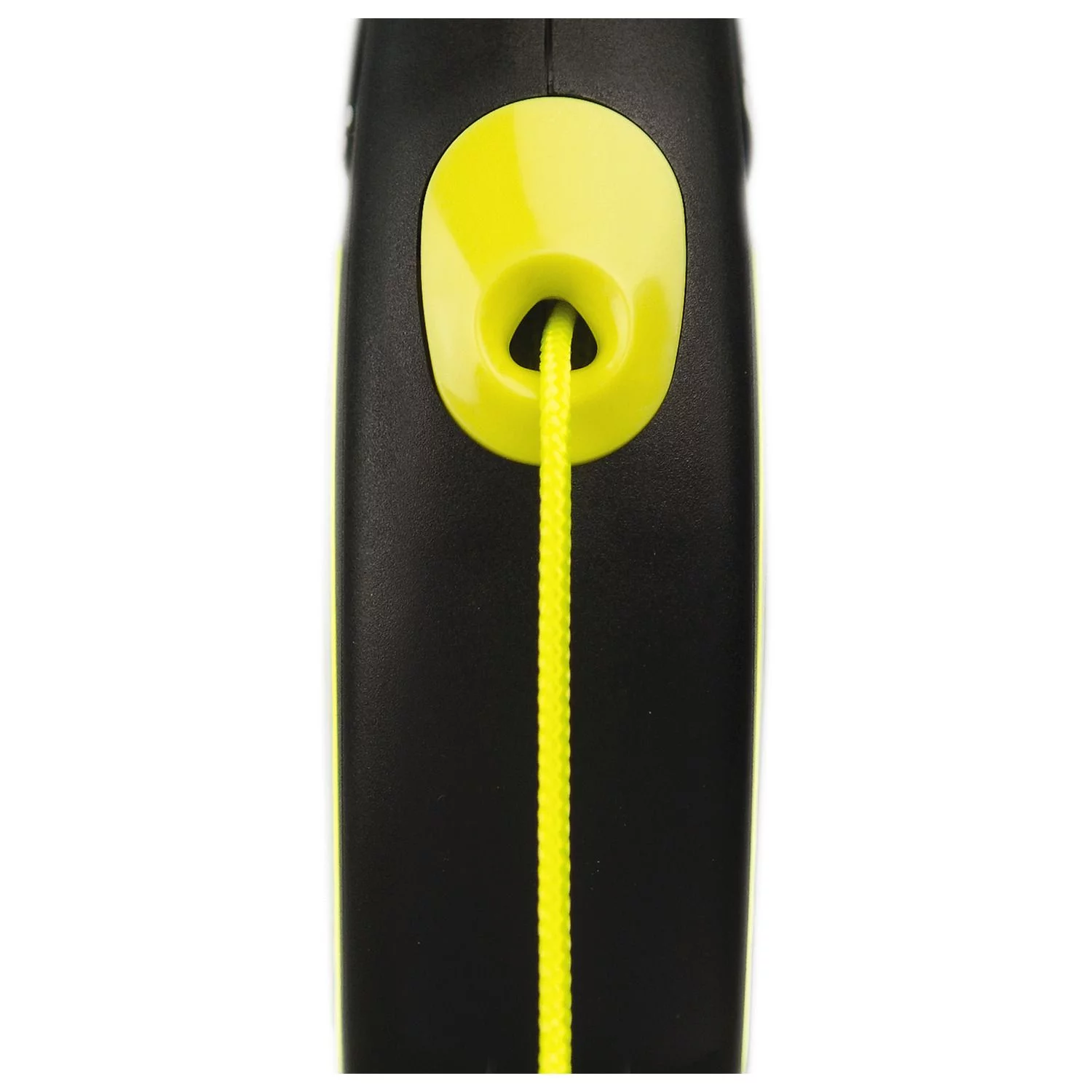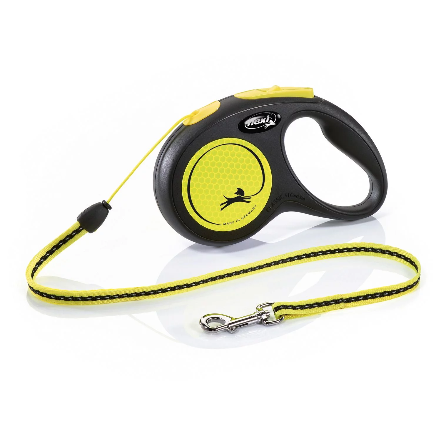 Bij Flexi kan je kiezen tussen lijnen met een koord en lijnen met tape. Het is een persoonlijke voorkeur welke variant je het fijnst vindt. In principe zijn beide soorten even sterk en veilig om te gebruiken. De New Neon Cord bevat een koord.
