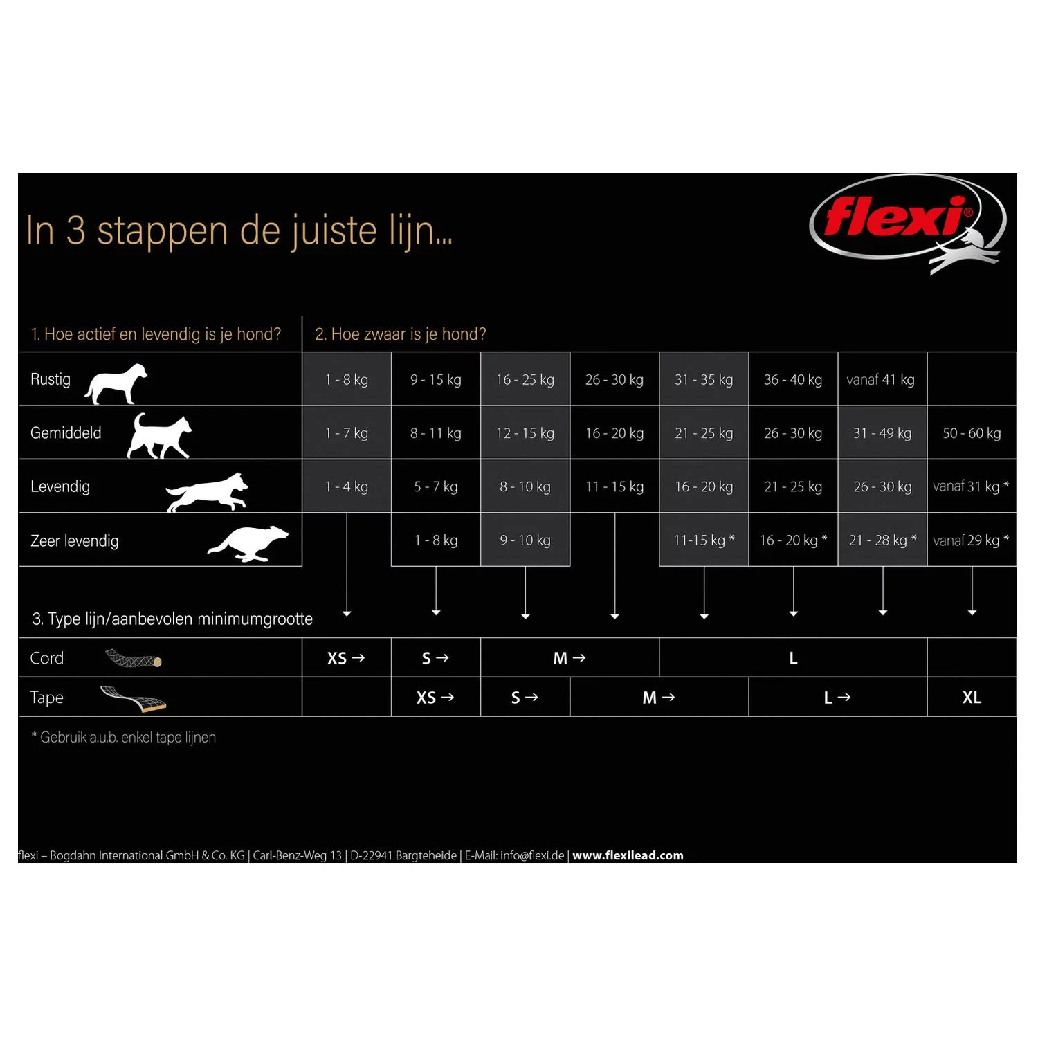 Bij Flexi kan je kiezen tussen lijnen met een koord en lijnen met tape. Het is een persoonlijke voorkeur welke variant je het fijnst vindt. In principe zijn beide soorten even sterk en veilig om te gebruiken. De New Neon Tape bevat een tape.