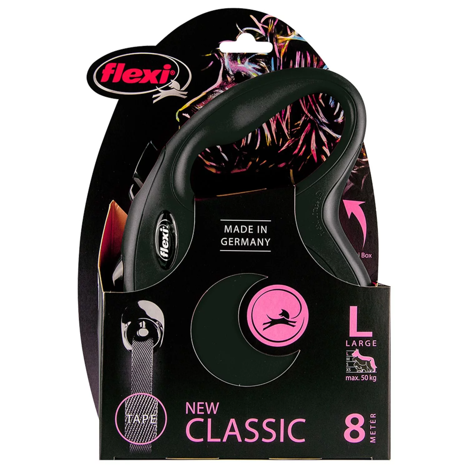Het is mogelijk om de Flexi New Classic Tape L uit te breiden met de Flexi Multi Box (poepzakjes- of snackhouder) of het LED Lighting System (LED-lampje) (los te koop). De Flexi New Classic is verkrijgbaar in de maten XS, S, M en L.