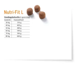 De brokken hebben een hoge verteerbaarheid en daardoor is het niet nodig om grote hoeveelheden te voeren. De brok zorgt voor een compacte ontlasting en helpt om maagkantelen bij je hond te voorkomen. Bij grote rassen krijgen de botten en gewrichten het vaak te verduren, om je hond te ondersteunen bevat Nutri-Fit een optimale calciumfosforverhouding en zijn glucosamine en chondroïtine toegevoegd ter bescherming van het kraakbeen. De brok ondersteunt een gezonde huid en blijvend glanzende vacht dankzij het toevoegen van Noorse zalmolie. Natuurlijk is de voeding ook heel smakelijk waardoor jouw hond Nutri-Fit met plezier zal eten.