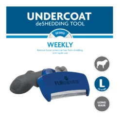 Honden verharen nou eenmaal, daar kan je weinig tegen doen. Wel kan je het onderhoud van de vacht makkelijker maken met de Undercoat deShedding Tool van FURminator. Een borstel die tot wel 99% van de losse haren verwijdert. Gebruik de kam 1 tot 2 keer per week (10 tot 20 minuten per keer) op droog haar. Geschikt voor langharige, grote hondenrassen tussen de 23 en 41 kg.