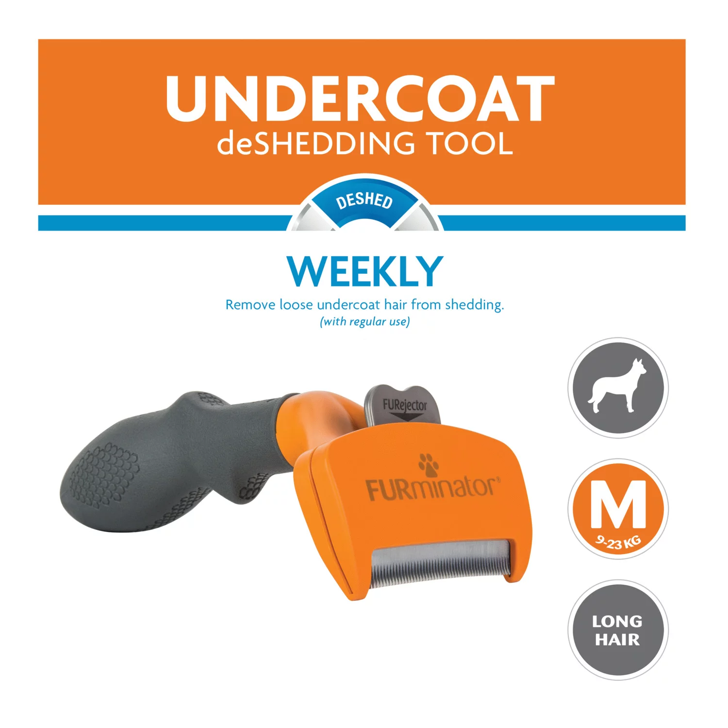 Honden verharen nou eenmaal, daar kan je weinig tegen doen. Wel kan je het onderhoud van de vacht makkelijker maken met de Undercoat deShedding Tool van FURminator. Een borstel die tot wel 99% van de losse haren verwijdert. Gebruik de kam 1 tot 2 keer per week (10 tot 20 minuten per keer) op droog haar. Geschikt voor langharige, middelgrote hondenrassen tussen de 9 en 23 kg.