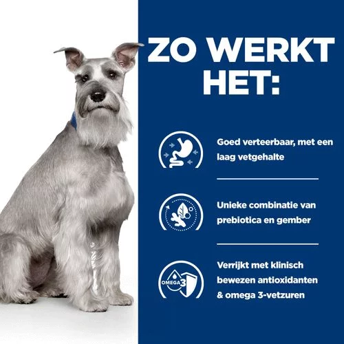 Problemen met de spijsvertering van de hond kunnen erg vervelend zijn. Gelukkig is er Hill’s Prescription Diet i/d Low Fat hondenvoer. Een wetenschappelijk samengestelde voeding met kip dat het spijsverteringskanaal verzacht en kalmeert.