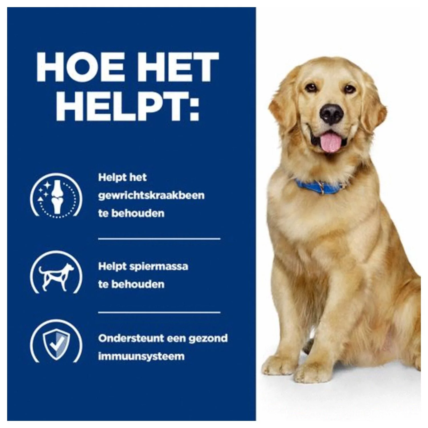 Problemen met de gewrichten van de hond kunnen erg vervelend zijn. Gelukkig is er Hill’s Prescription Diet j/d Joint Care hondenvoer. Een wetenschappelijk samengestelde voeding met kip die je hond ondersteunt bij het lopen, rennen, spelen en traplopen door pijnlijke gewrichten te verzachten en gezond kraakbeen te behouden. In slechts 21 dagen zal er een zichtbare verbetering optreden.