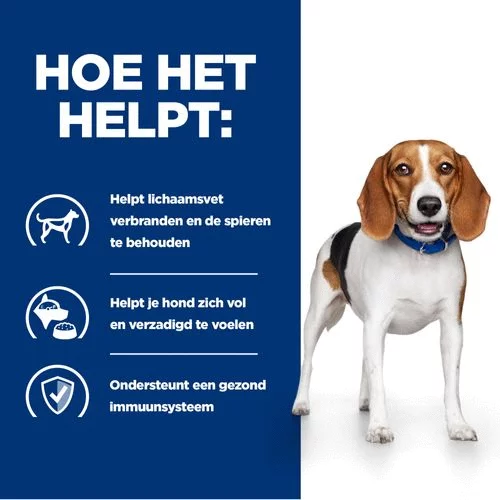 Problemen met het gewicht van de hond kunnen erg vervelend zijn. Gelukkig is er Hill’s Prescription Diet r/d Weight Reduction hondenvoer. Een wetenschappelijk samengestelde voeding met kip waarvan klinisch is bewezen dat deze het lichaamsvet met 13% vermindert in slechts 2 maanden. Daarnaast zorgt het voer ervoor dat je hond een verzadigd gevoel behoudt tijdens het afvallen, zo wordt het hongergevoel verminderd.