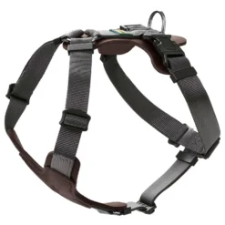 Dit tuig heeft een eenvoudig, maar zeer functioneel ontwerp; ideaal voor het dagelijks leven, maar ook voor trainingen en diverse sportactiviteiten. Je klikt je riem of rollijn vast aan de D-ring op de rug van je hond. De nylon-leer combinatie is makkelijk in onderhoud, het beste van twee werelden! Bij geverfd leer kan er een lichte verkleuring optreden.