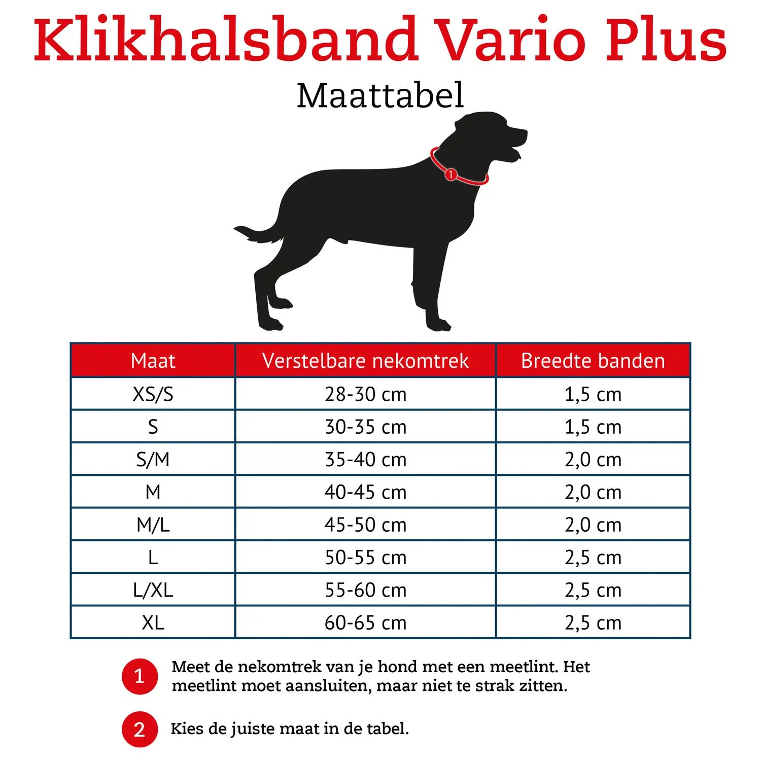 De Klikhalsband Vario Plus is verkrijgbaar in verschillende kleuren en maten.