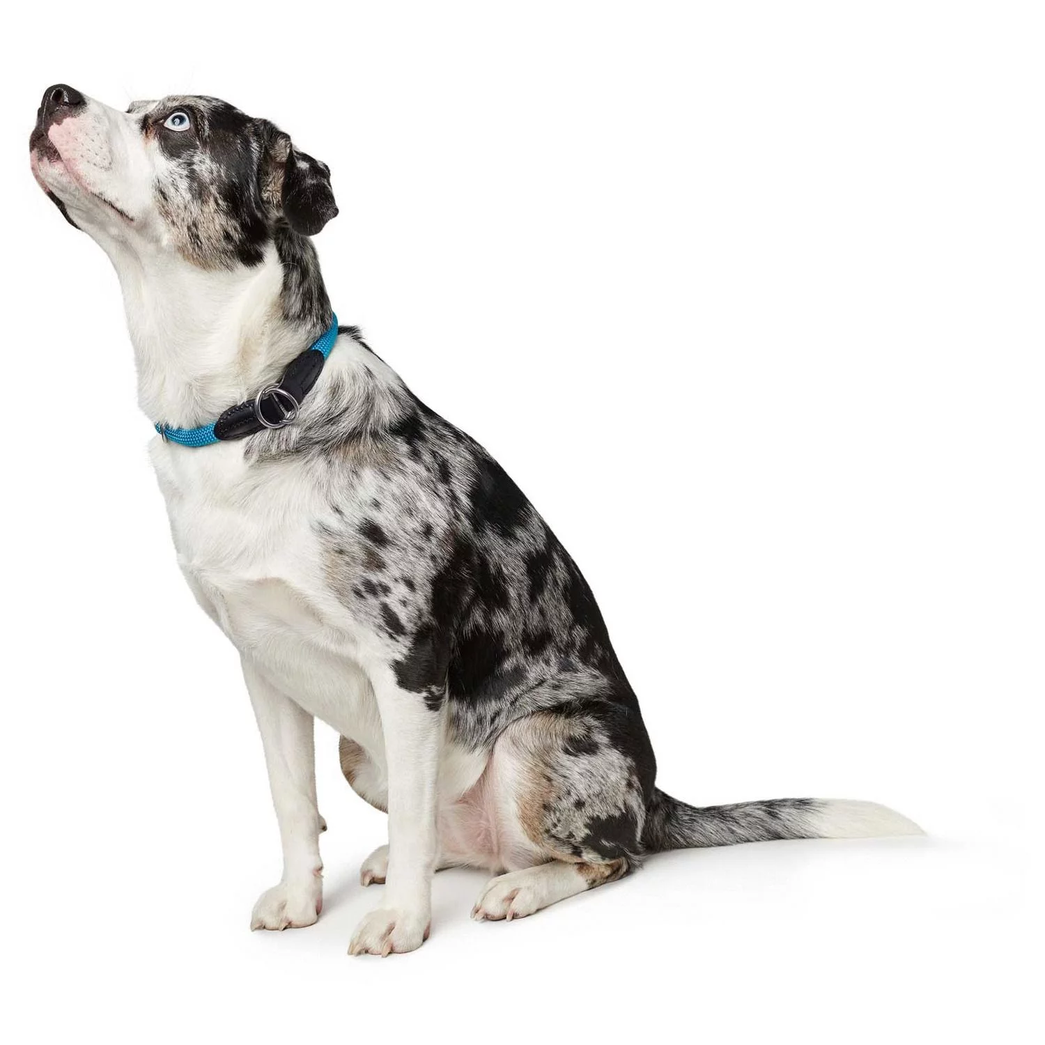 Je meet de juiste omtrek met een flexibel meetlint rond het midden van de nek van je hond. Het meetlint moet goed aansluiten, maar moet niet te strak zitten. Zorg ervoor dat er ongeveer een vingerbreedte tussen het meetlint en de nek zit. Kies vervolgens een passende nekomtrek. Valt de omtrek net aan het eind van een maat? Kies dan voor de zekerheid een maatje groter (al helemaal voor honden in de groei).