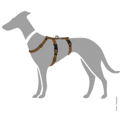 Het tuig kan op meerdere punten versteld worden. De looplijn of riem bevestig je aan de D-ring op de rug.