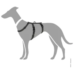Het tuig kan op meerdere punten versteld worden. De looplijn of riem bevestig je aan de D-ring op de rug.