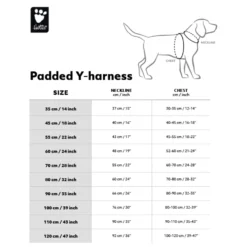 Het Hurtta Padded Tuig Y-Model is verkrijgbaar in verschillende maten.