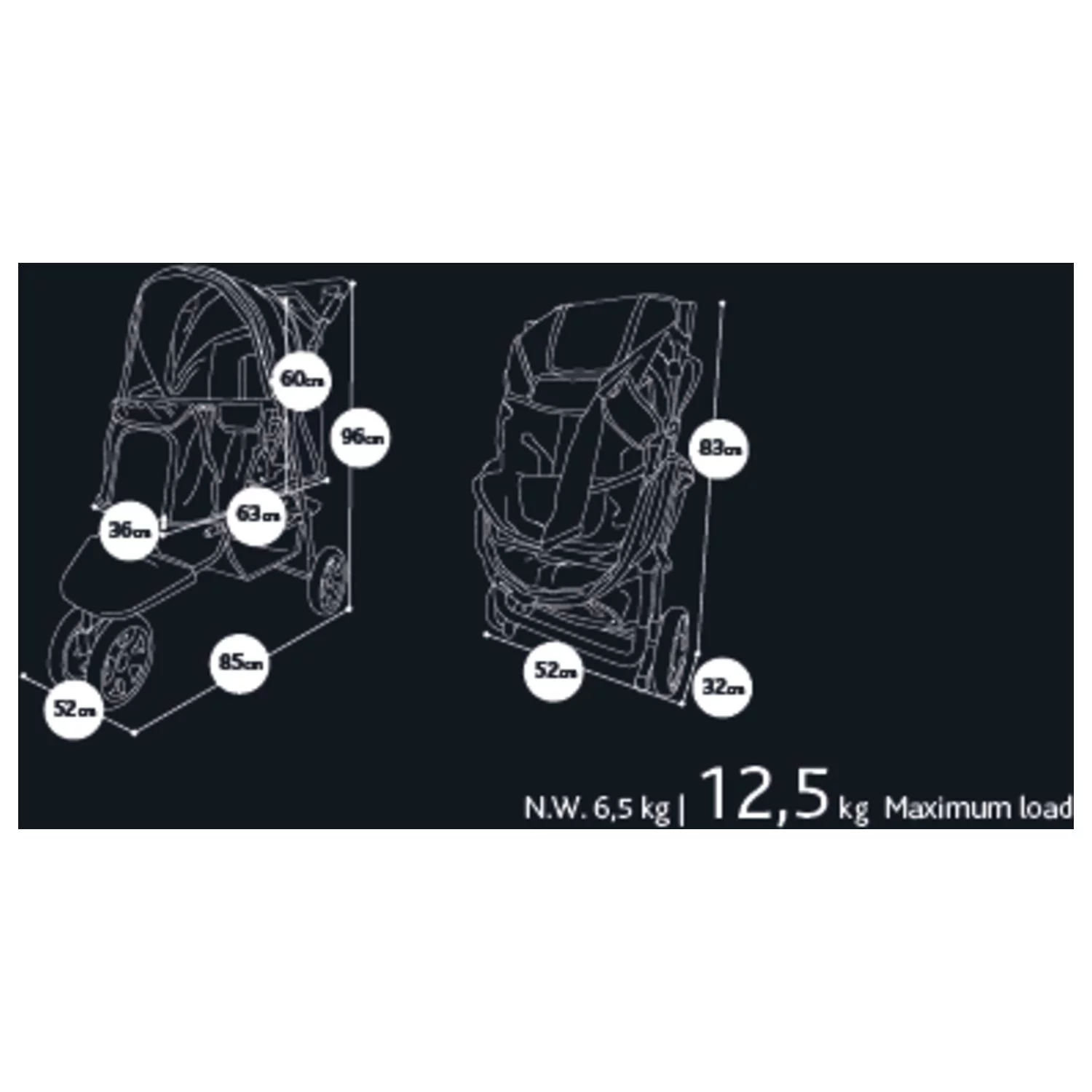 - Afmetingen ingeklapt: 52 x 32 x 83 cm