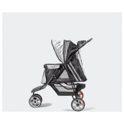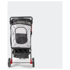 De buggy kan aan de voorzijde open om je hond in de buggy te tillen. De voorflap kan je omhoog klappen onder de kap van de kap (zo zit het niet in de weg van je hond) om je hond de ruimte te geven om om zich heen te kijken. Of je ritst deze flap dicht voor extra veiligheid onderweg. Het zitgedeelte bevat 2 aanleglijnen. De kar heeft voldoende ventliatiegaas zodat je hond genoeg lucht krijgt, ook met de ritsen dicht.