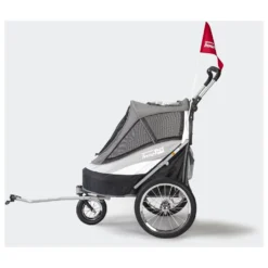 Deze fietskar is voorzien van hoge kwaliteits luchtbanden zodat je hond comfortabel achterin zit, ongeacht de ondergrond. De aanhanger is ook zeer stabiel wat voor nog meer comfort zorgt. Voor extra zichtbaarheid op de weg, wordt de kar geleverd met een vlag. Je kunt de kar meenemen aan de fiets, maar het is ook mogelijk om de Sporty Dog Trailer Deluxe als losse buggy te gebruiken.