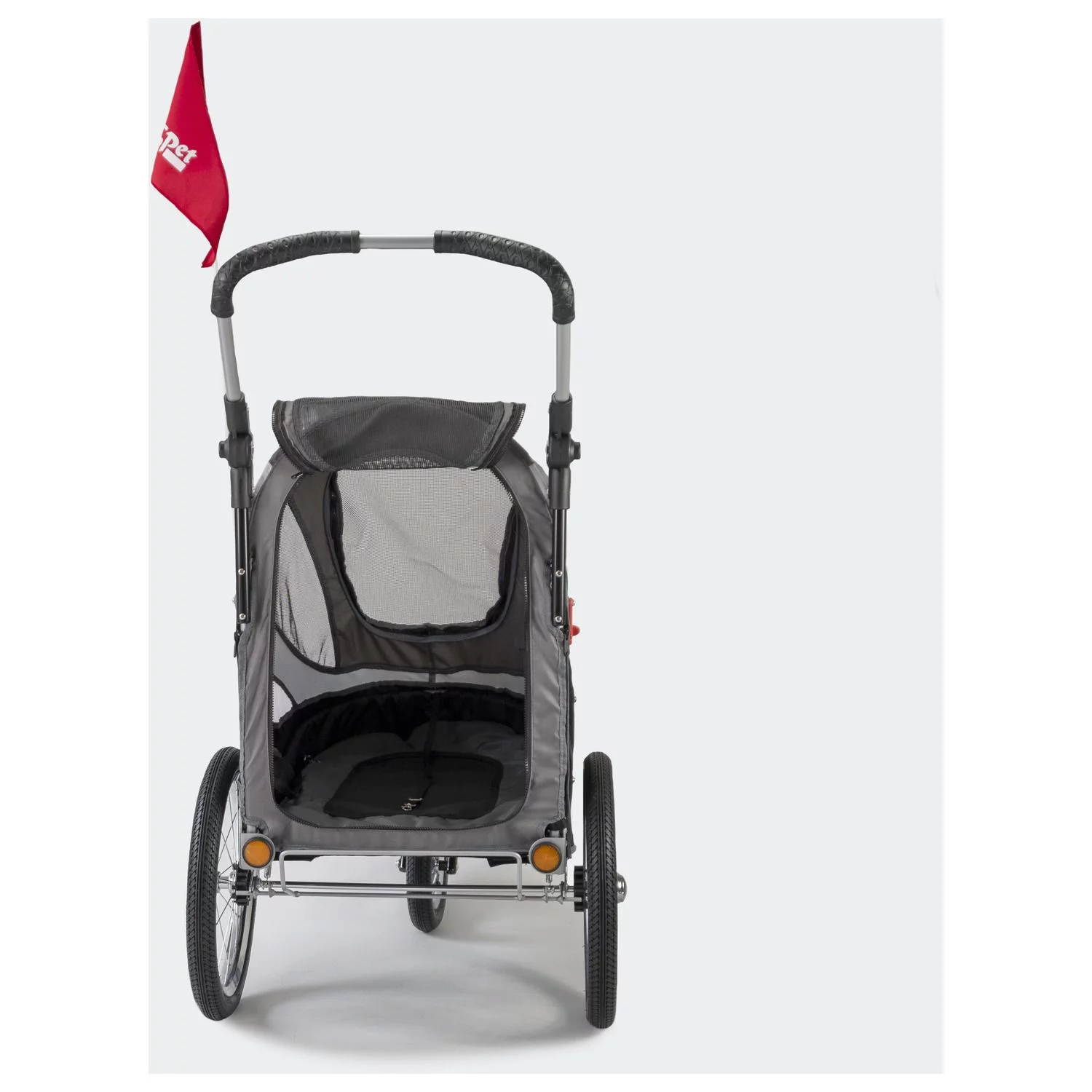 De Sporty Dog Trailer Deluxe is grijs met zwart van kleur en heeft de volgende kenmerken: