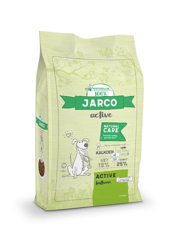 Een actieve hond heeft extra veel energie nodig om de dag door te kunnen komen. Natural Active Kalkoen van Jarco is een hoogwaardige natuurlijke en gezonde premium voeding voor actieve honden met een verhoogde energie- en voedingsbehoefte.