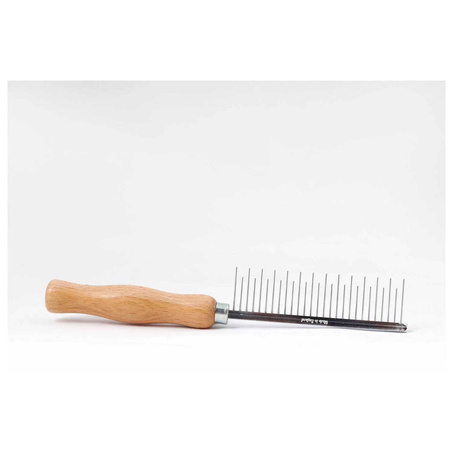 De Jean Peau Kam met houten handvat is een grote sterke grove kam die geschikt is voor de lastig te kammen vachten en grote honden zoals de Leonberger, newfoundlander en de Sint-Bernhard.
