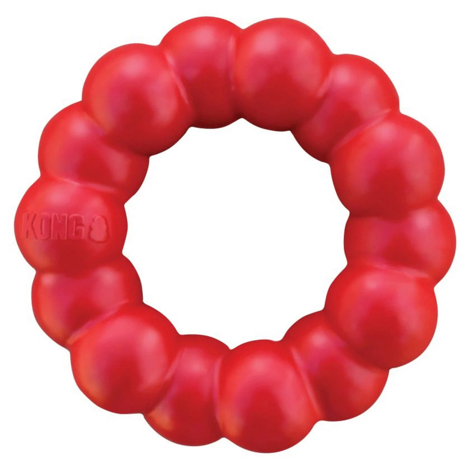 De Kong Ring is gemaakt van natuurlijk rood rubber dat het kauwinstinct van je hond prikkelt. De focus van dit speeltje ligt op langdurige kauwsessies waarbij de toegevoegde noppen zorgen voor een heerlijke kauwervaring. Een bijkomend voordeel van de Kong Ring is de ondersteunende functie voor het gebit. Het rubber bevordert gezonde tanden en een gezond tandvlees door het vele kauwen en knagen.