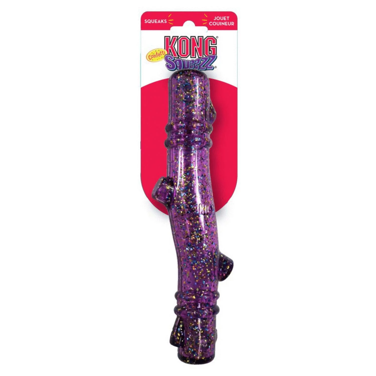 De meeste honden vinden apporteerspellen geweldig. Ze kunnen hun energie kwijt en kunnen ook nog eens samen met hun baasje spelen. De ideale manier om aan jullie onderlinge band te werken. De Squeezz Confetti Stick van Kong is een stuiterende stok met vrolijke confettikleuren, onweerstaanbaar voor iedere viervoeter.