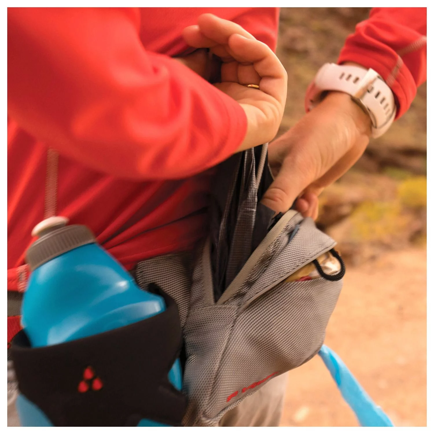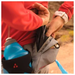 Je wilt natuurlijk niet je drinkflesje en je sleutels te hoeven dragen tijdens het wandelen of hardlopen. Daarom komt de Excusion Running Belt met een handig waterflesje en een tasje waarin jij je spullen kwijt kan. Dit tasje is voorzien van een ritssluiting en heeft een houder voor poepzakjes.