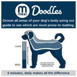 Honden met een gekrulde vacht en met name doodle-kruisingen zoals de labradoodle, goldendoodle en cockapoo hebben professionele vachtverzorging nodig. Als de vacht niet met regelmaat wordt verzorgd, kunnen er snel klitten en vervilting ontstaan. Daarom heeft Mikki een vachtverzorgingslijn ontwikkeld, speciaal voor dit vachttype. Zo ook de Doodle Grooming Kit van Mikki.