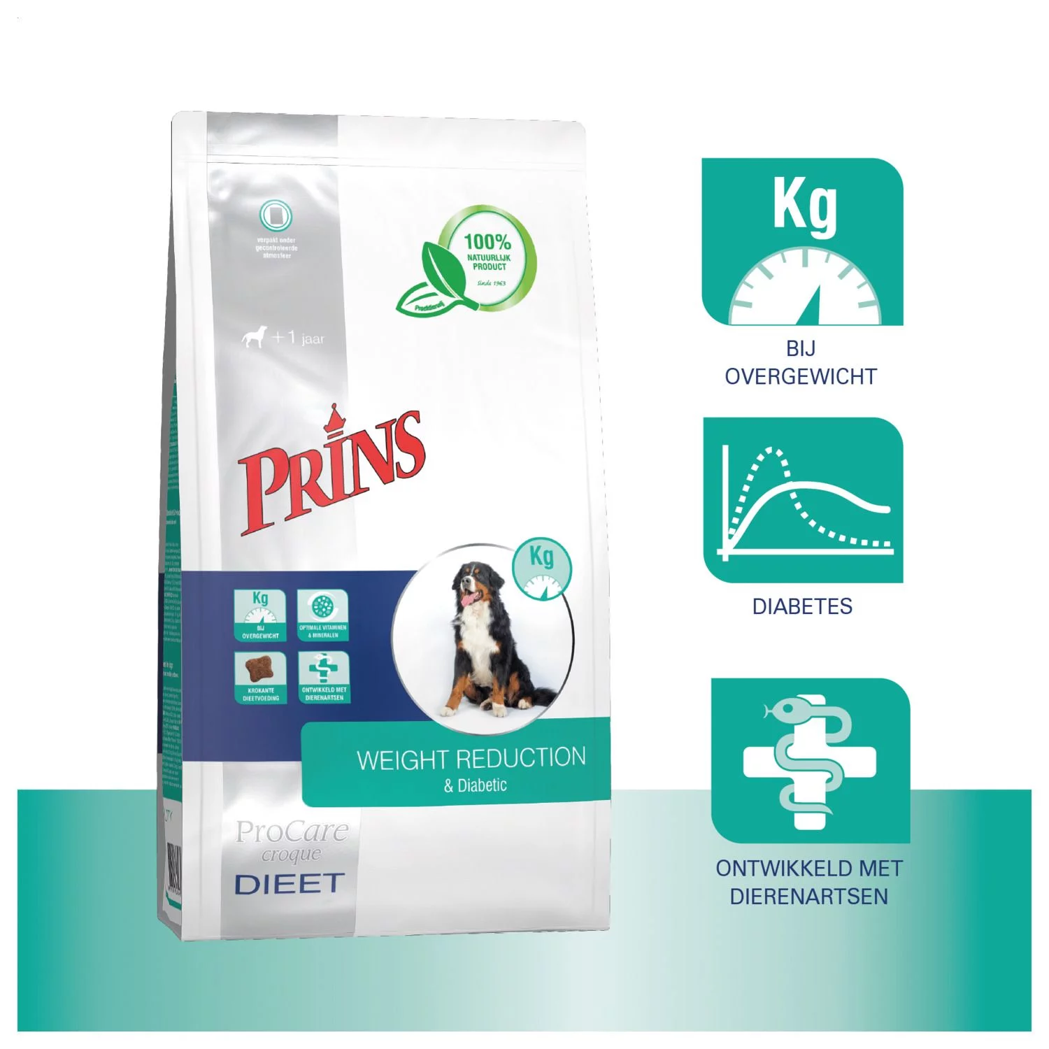 Prins ProCare Veterinary Diet Croque Weight Reduction & Diabetic is verkrijgbaar in 3 kg en 10 kg.