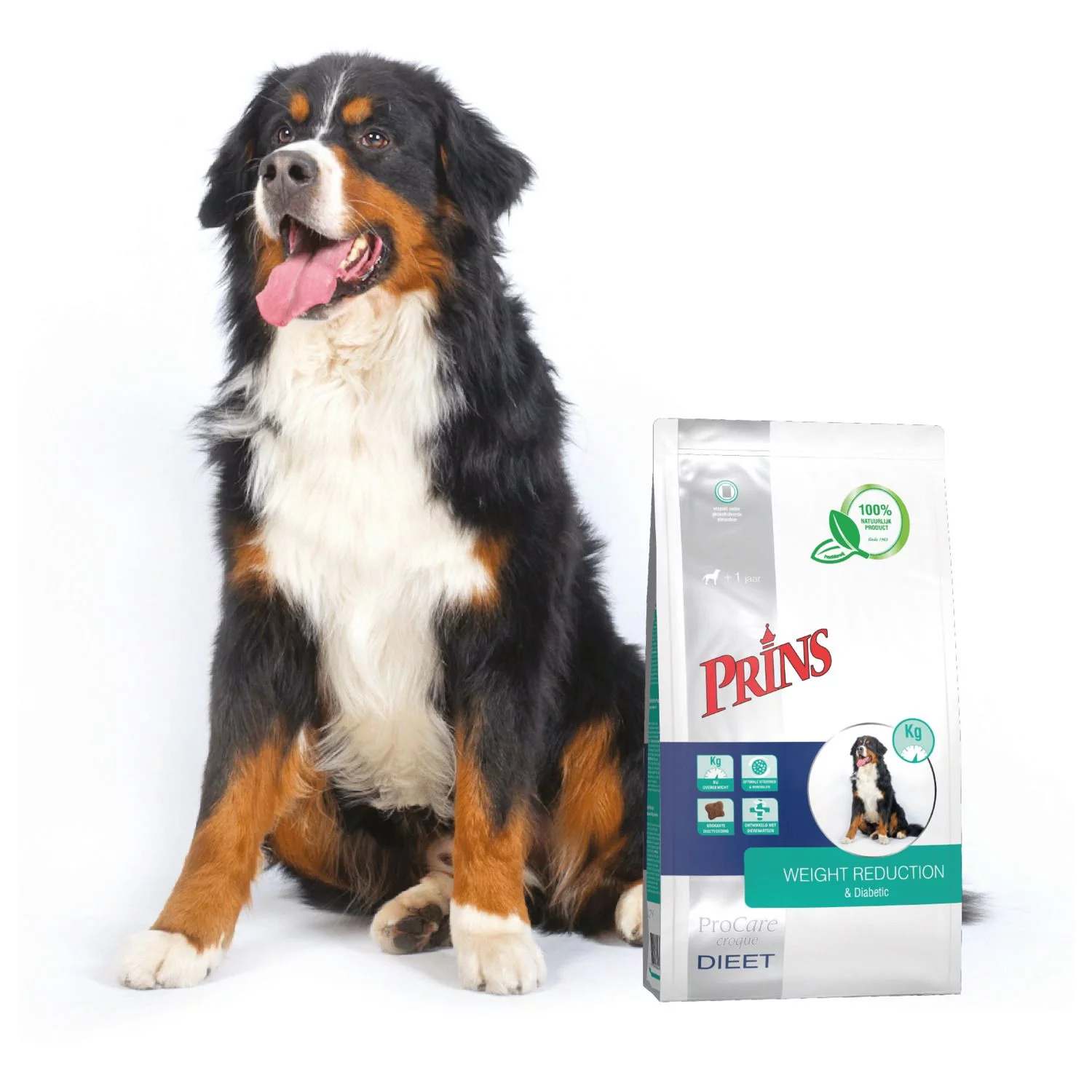 Overgewicht wordt bij honden een steeds groter probleem, een te zwaar lichaam kan meerdere gezondheidsrisico’s met zich meedragen. Prins ProCare Veterinary Diet Croque Weight Reduction & Diabetic is een 100% natuurlijke, krokante dieetvoeding voor honden met overgewicht en/of diabetes.