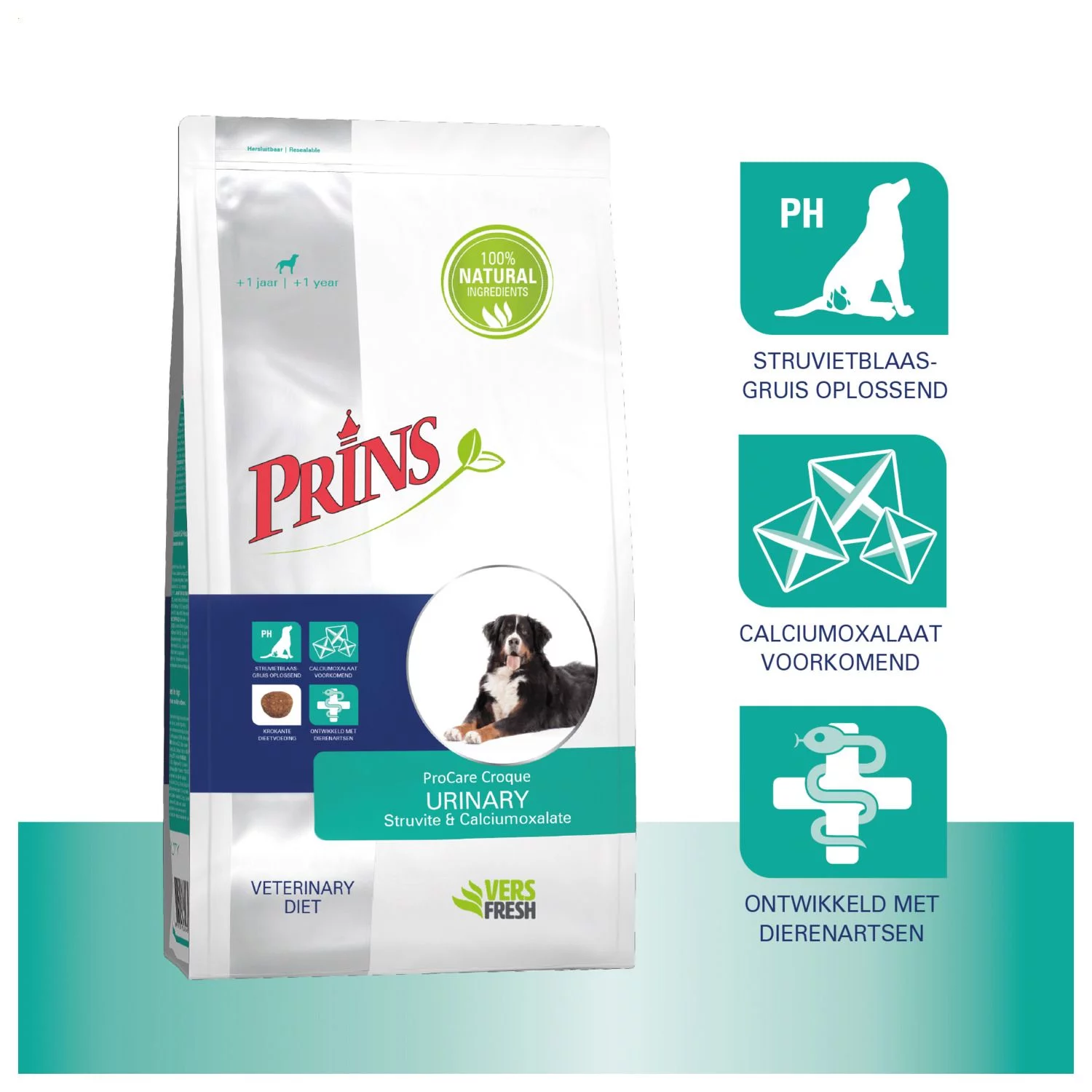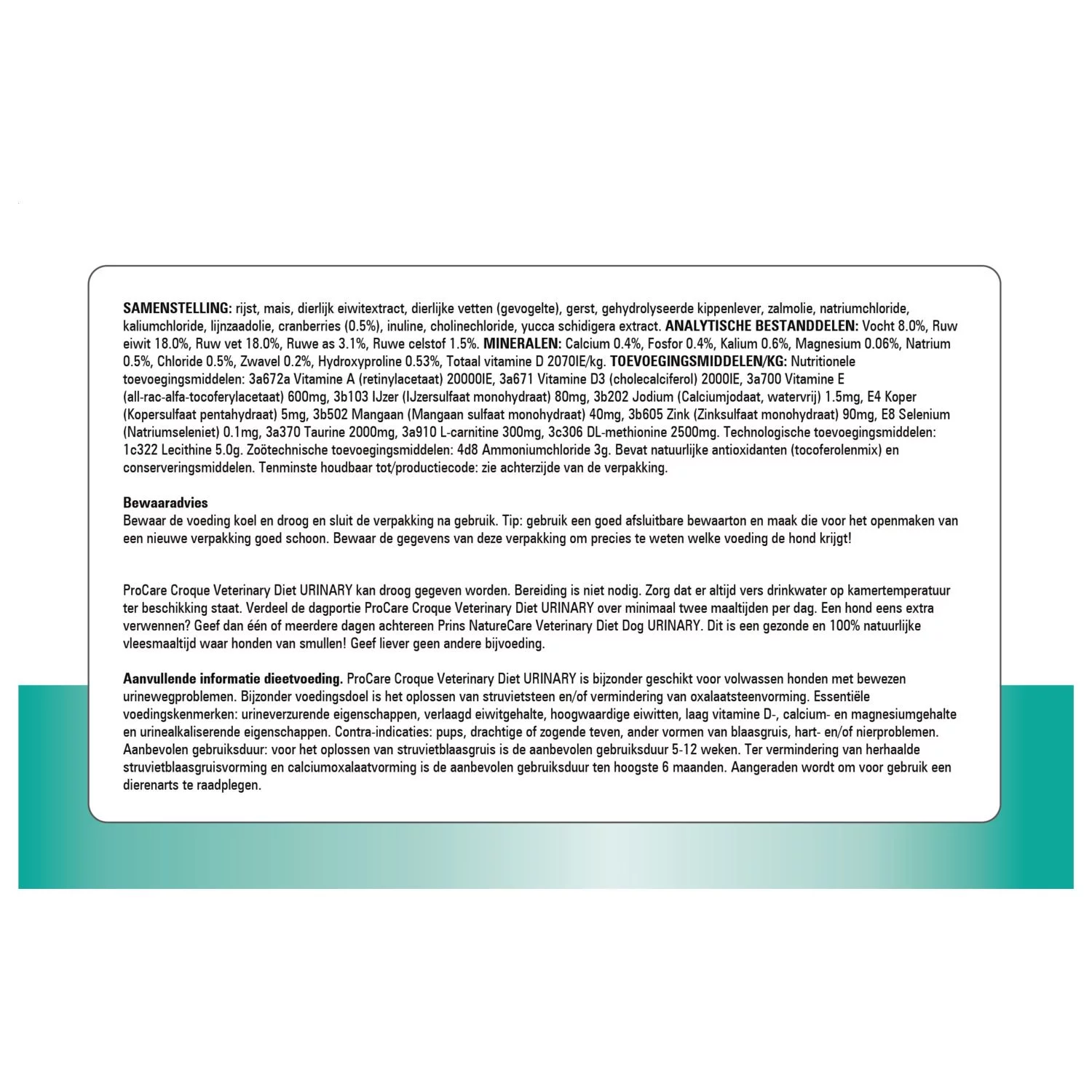 Prins ProCare Veterinary Diet Croque Urinary Struvite & Calciumoxolate is verkrijgbaar in 3 kg en 10 kg.