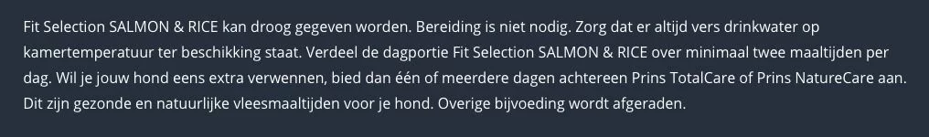 Sommige honden hebben niet last van gevoeligheden of andere klachten en zijn gewoon naar een goede complete voeding. Prins Fit Selection Zalm & Rice is een 100% natuurlijke, krokante brokvoeding voor volwassen honden van (middel)grote rassen tot ongeveer 8 jaar oud.