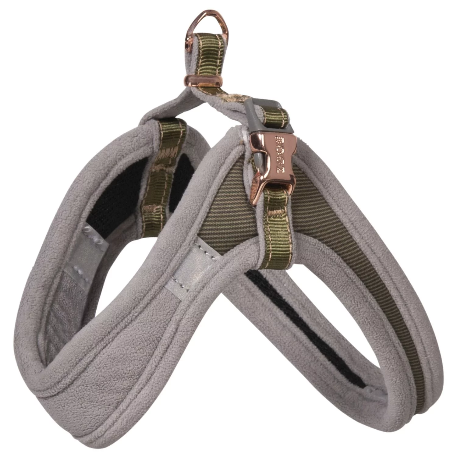 Het tuig heeft een zeer goede pasvorm dankzij onder andere de zachte padded-cushion voering die zorgt voor extra comfort en ondersteuning, zo zijn de gewrichten van je hond volledig vrij om te bewegen. De harde onderdelen hebben een ronde vorm, zo vormen ze mee met het lichaam en heeft het tuig een optimale pasvorm. Het tuig heeft zachte pasteltinten met rosé gouden details, die nooit uit de mode raken.
