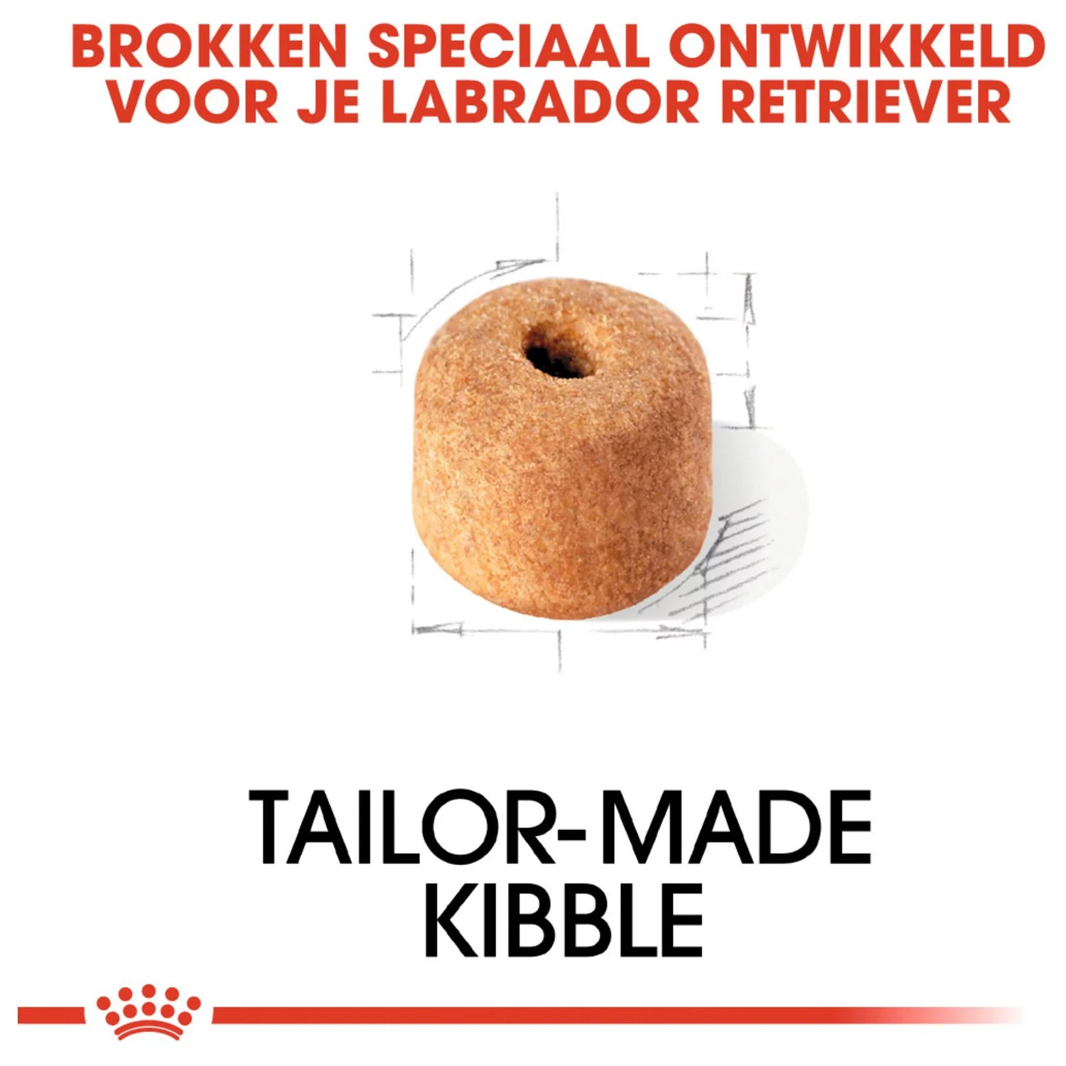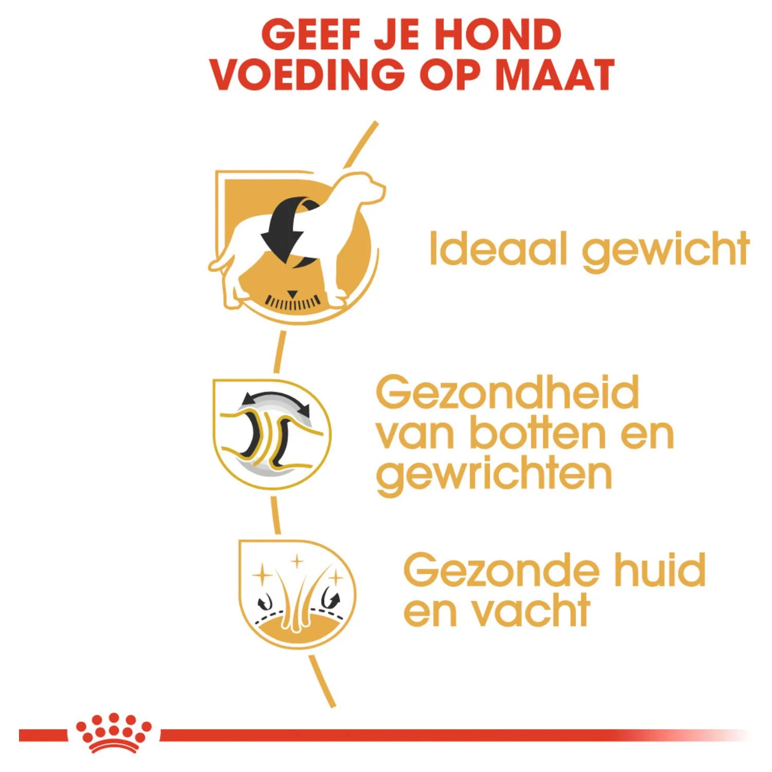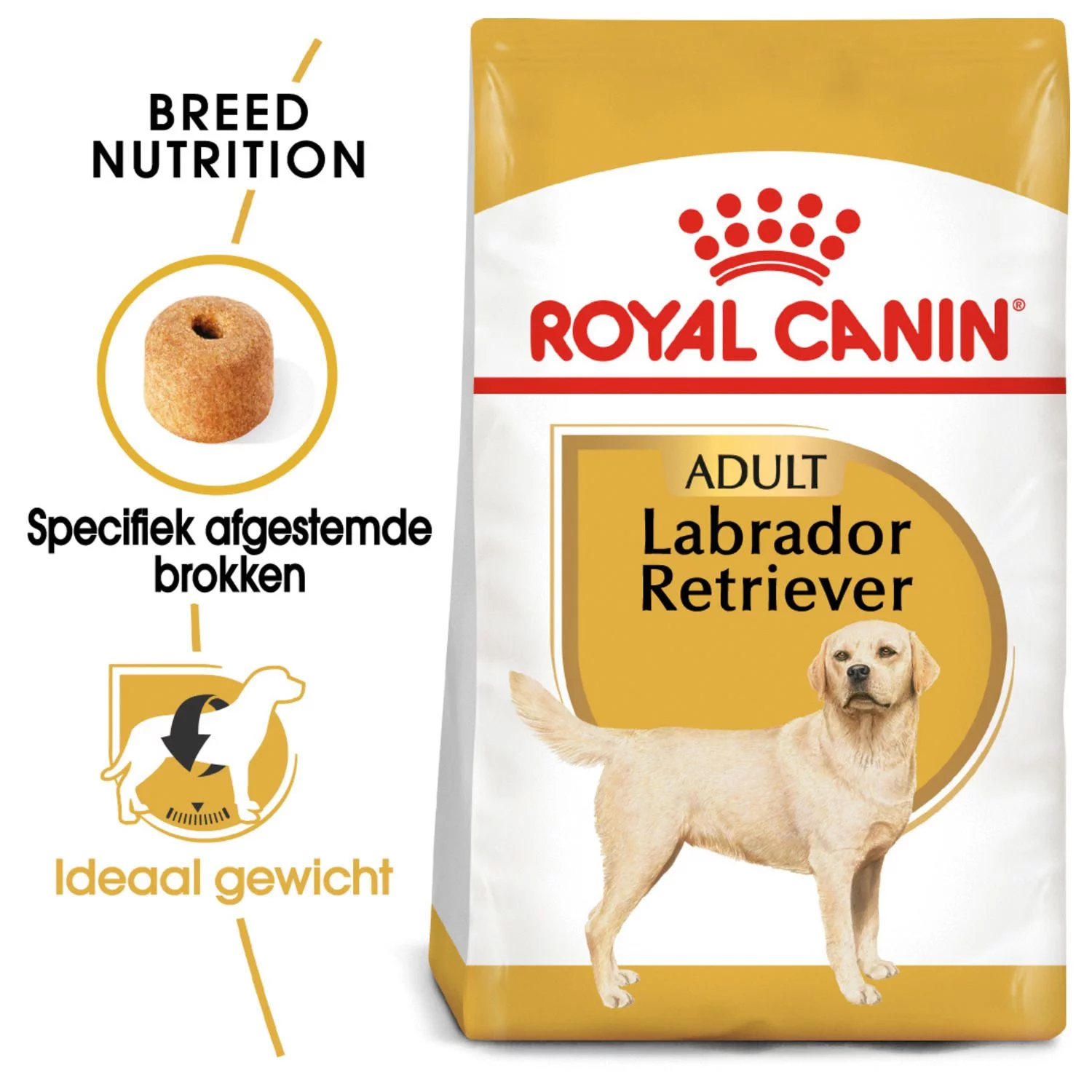 Royal Canin Labrador Retriever Adult is verkrijgbaar in 3 kg en 12 kg.