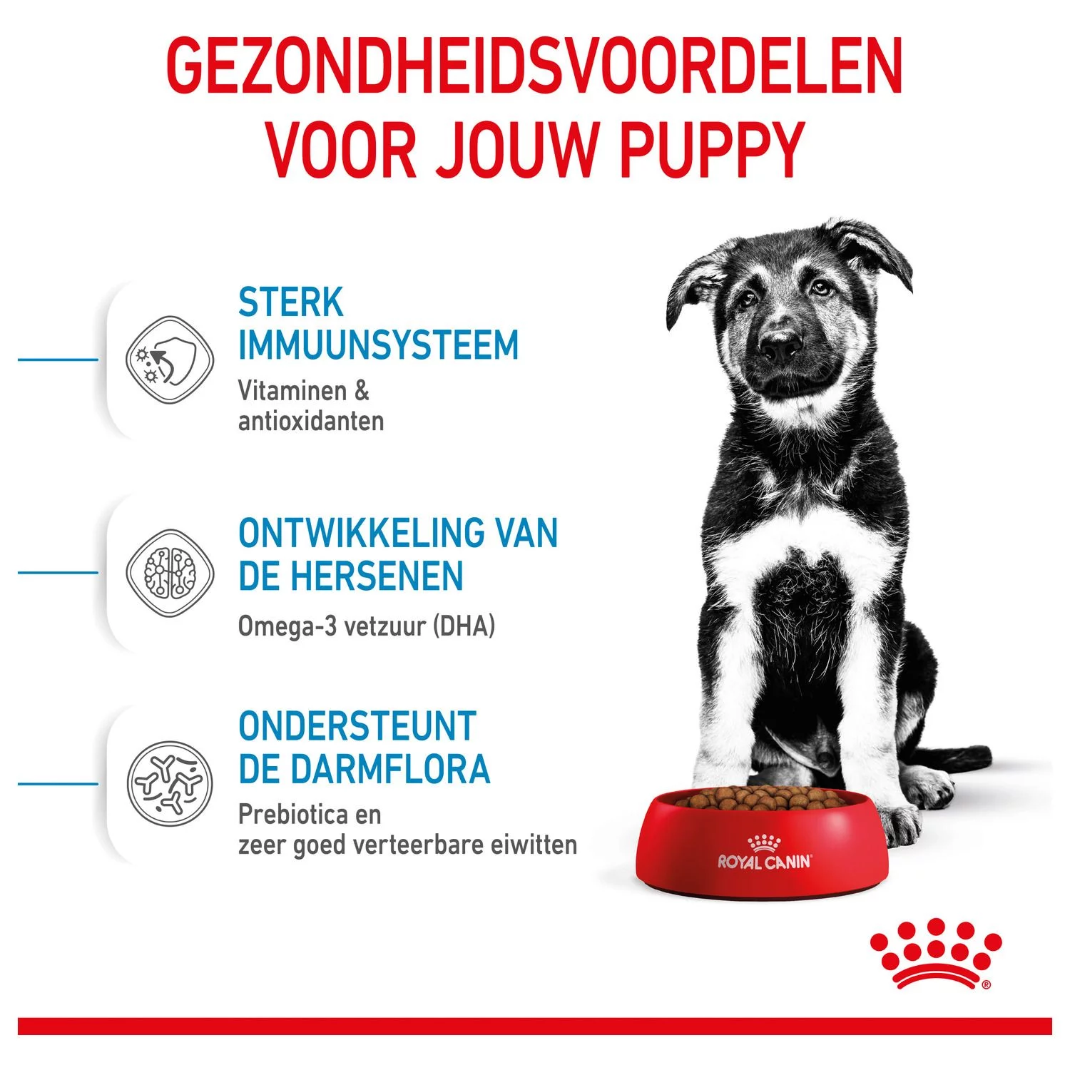 - Voor puppy’s van grote rassen van 2 tot 15 maanden oud