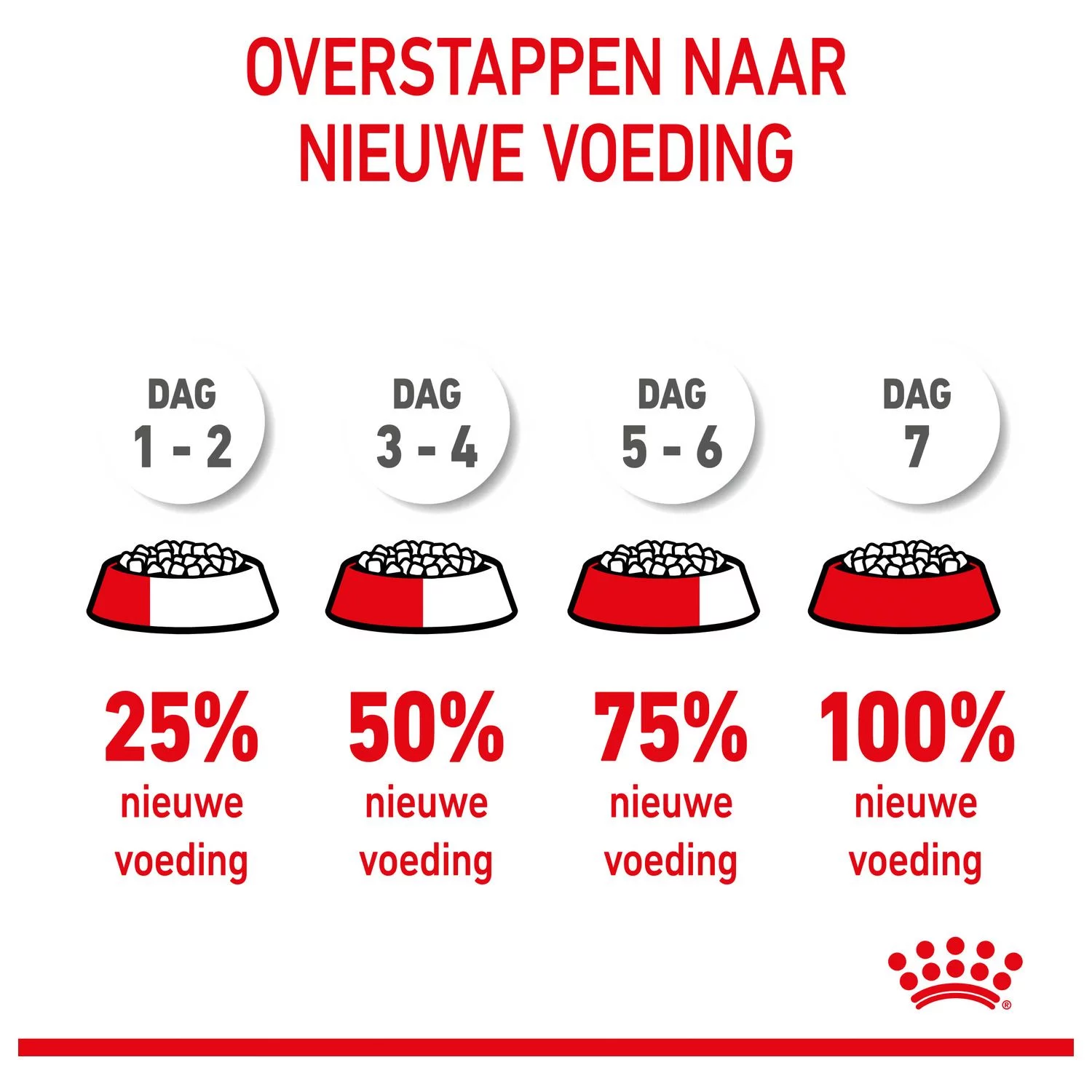 Wanneer je pup rond de 15 maanden oud is, zullen zijn voedingsbehoeftes weer veranderen. Je hond heeft dan een voeding nodig die past bij de volwassen hond. Het is dan ook aan te raden om op een leeftijd van anderhalf tot twee jaar over te stappen op producten voor volwassen honden van Royal Canin; zoals Royal Canin Maxi Adult.