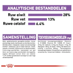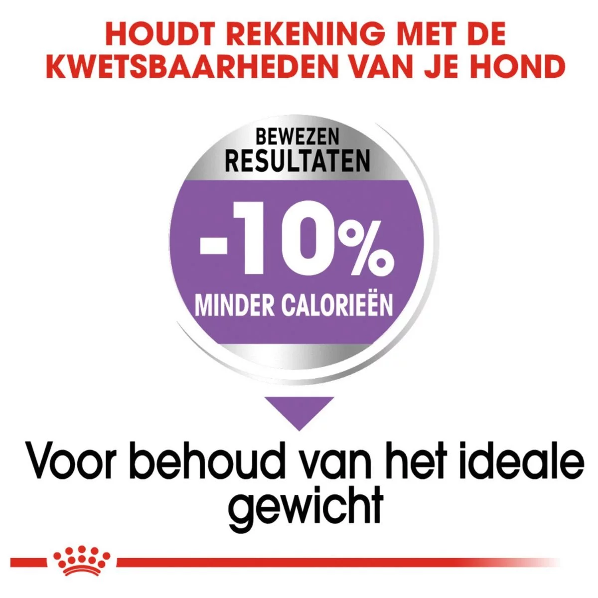 De optimale combinatie van vezels helpt je hond langer een vol gevoel te geven, het zorgt daarnaast voor een regelmatige stoelgang en helpt daarmee de spijsvertering te ondersteunen. Daarnaast zorgt het hoge eiwitgehalte ervoor dat je hond zijn spiermassa kan behouden, terwijl tegelijkertijd de vet- en calorie inname wordt verminderd.