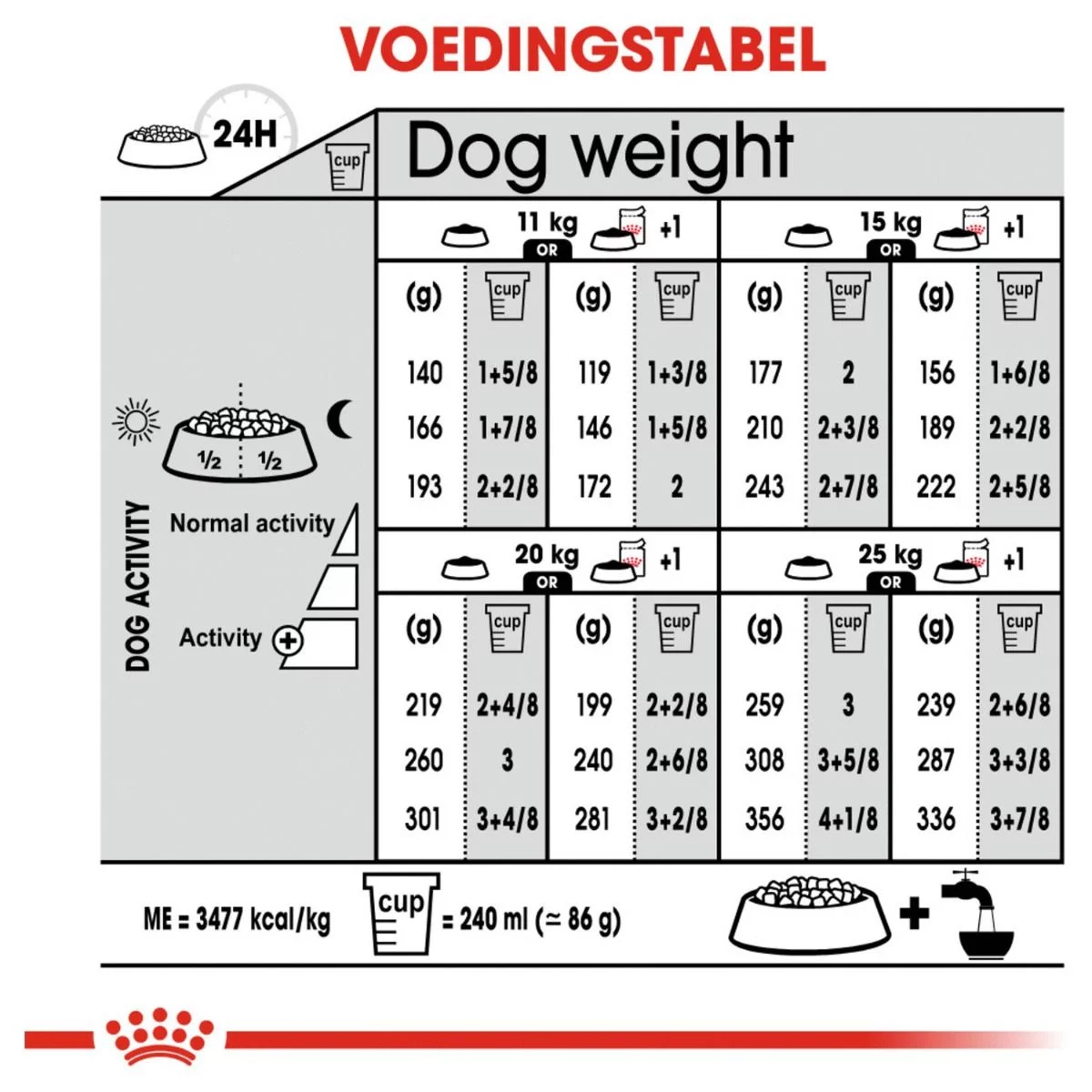 Sterilised Medium van Royal Canin is geschikt voor gecastreerde of gesteriliseerde honden met een lichaamsgewicht tussen 11 en 25 kilogram en deze hoogkwalitatieve complete voeding bevredigt de eetlust van je hond, zodat hij actief en in vorm kan blijven.