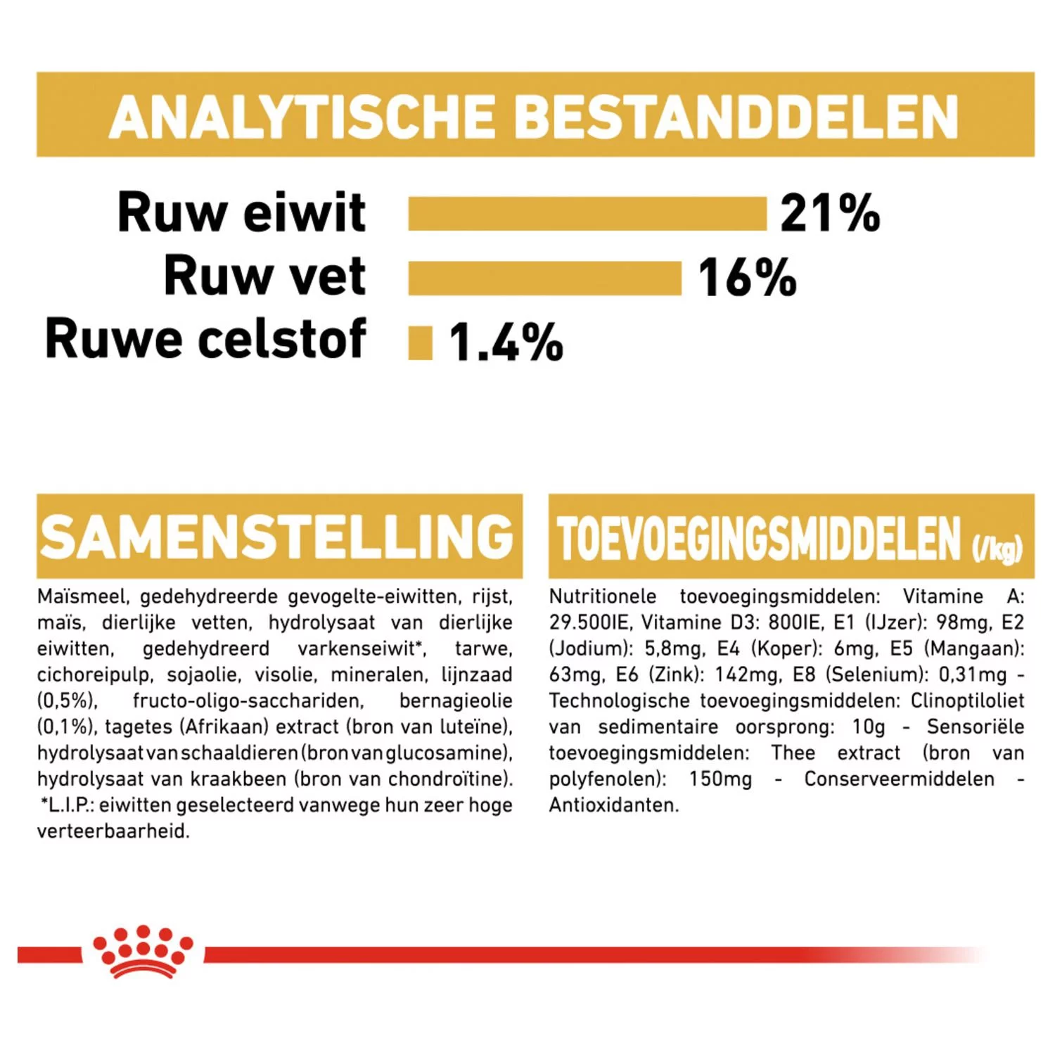 Royal Canin is toegewijd aan het leveren van voedingsoplossingen voor de behoeften van je huisdier. Alle producten ondergaan een uitgebreid kwaliteitscontroleproces om de optimale kwaliteit van de voeding te garanderen en om te voldoen aan de specifieke voedingsbehoeften en levensstijl van je hond. Als je hond Royal Canin West Highland White Terrier Adult eet, krijgt hij een complete en uitgebalanceerde voeding voorgeschoteld.