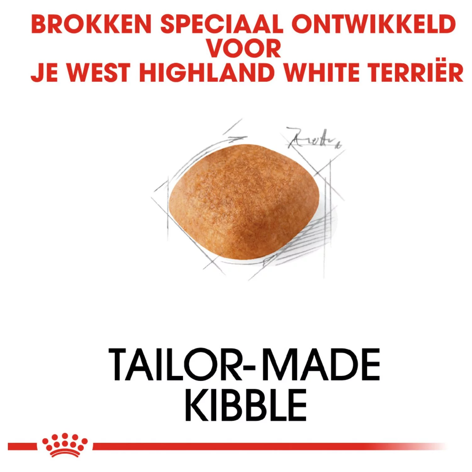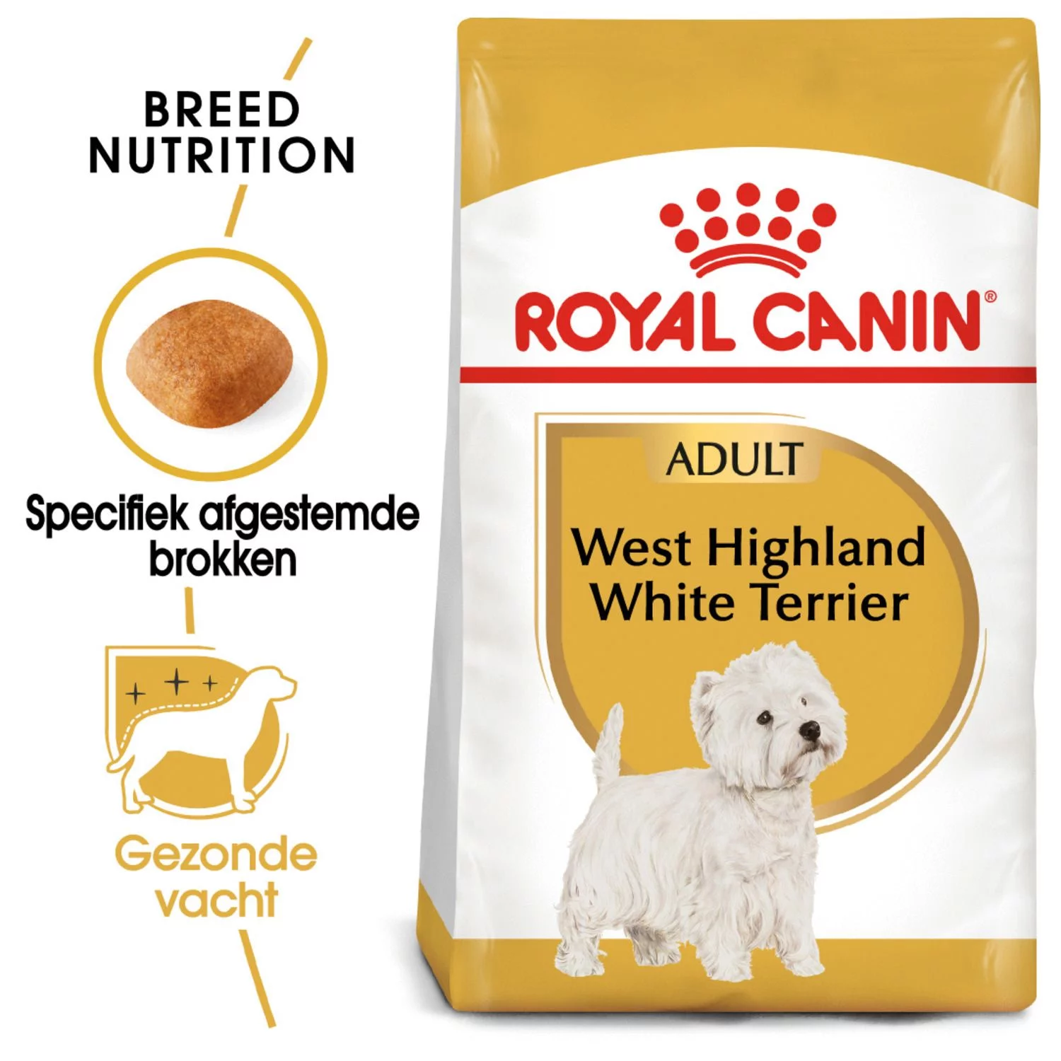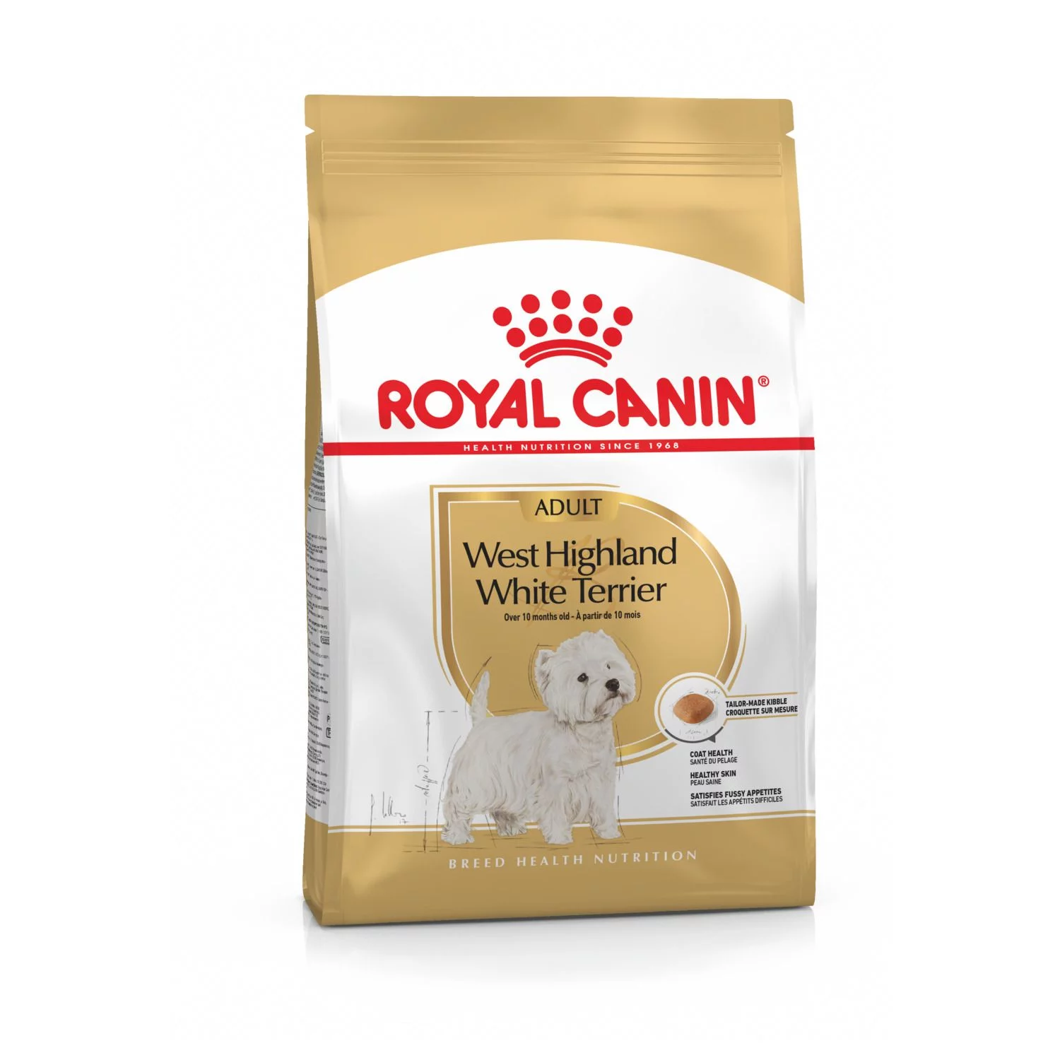 Royal Canin West Highland White Terrier Adult is verkrijgbaar in 1,5 kg en 3 kg.