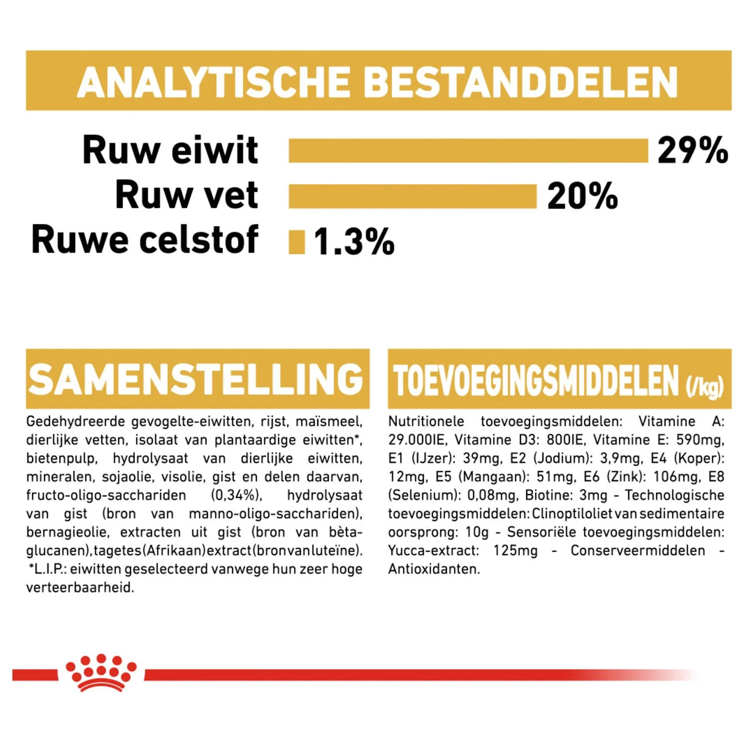 Royal Canin is toegewijd aan het leveren van voedingsoplossingen voor de behoeften van je huisdier. Alle producten ondergaan een uitgebreid kwaliteitscontroleproces om de optimale kwaliteit van de voeding te garanderen en om te voldoen aan de specifieke voedingsbehoeften en levensstijl van je kitten. Als je hond Royal Canin Yorkshire Terrier Puppy eet, krijgt hij een complete en uitgebalanceerde voeding voorgeschoteld.