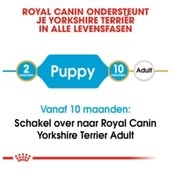 De groei is een essentiële fase in het leven van jouw jonge Yorkshire Terriër. Het is een tijd van nieuwe ontmoetingen en vele lichamelijke veranderingen. Daarom is het belangrijk dat de voeding die jij je puppy voorzet zijn gezondheid tijdens deze belangrijke fase ondersteunt. Royal Canin Yorkshire Terrier Puppy is geschikt voor Yorkshire Terriërs tot een leeftijd van 10 maanden en is speciaal ontwikkeld met de voedingsbehoeften van jouw jonge Yorkshire Terriër in het achterhoofd.