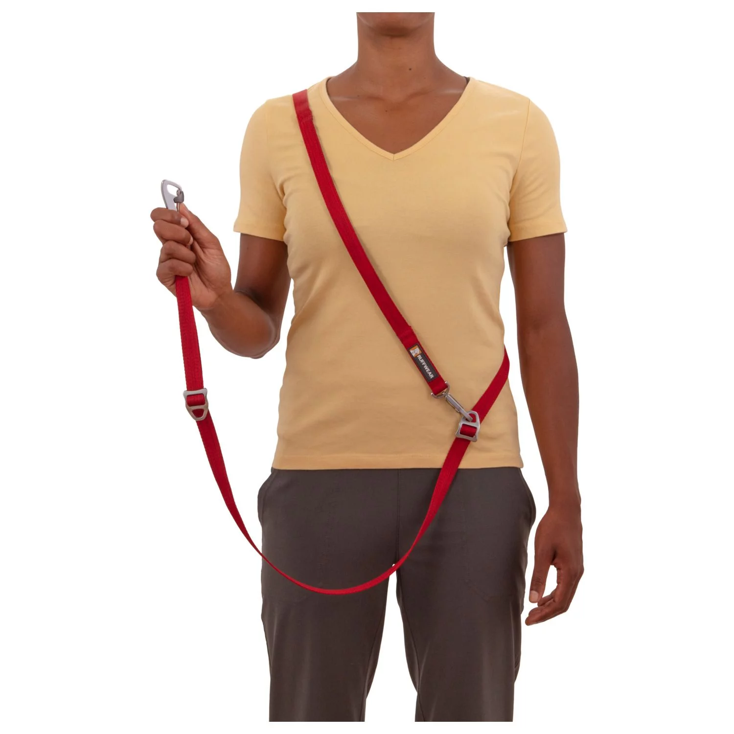 Deze soepele, lichtgewicht lijn bevat handige glijdende V-ringen om zo de riem op de gewenste maat te verstellen. Met deze riem van Ruffwear ben je gegarandeerd van fijne wandelingen.